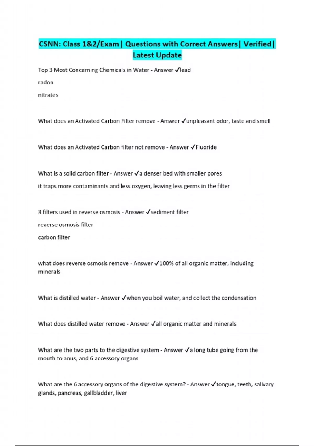 CSNN: Class 1&2/Exam| Questions with Correct Answers| Verified| Latest Update