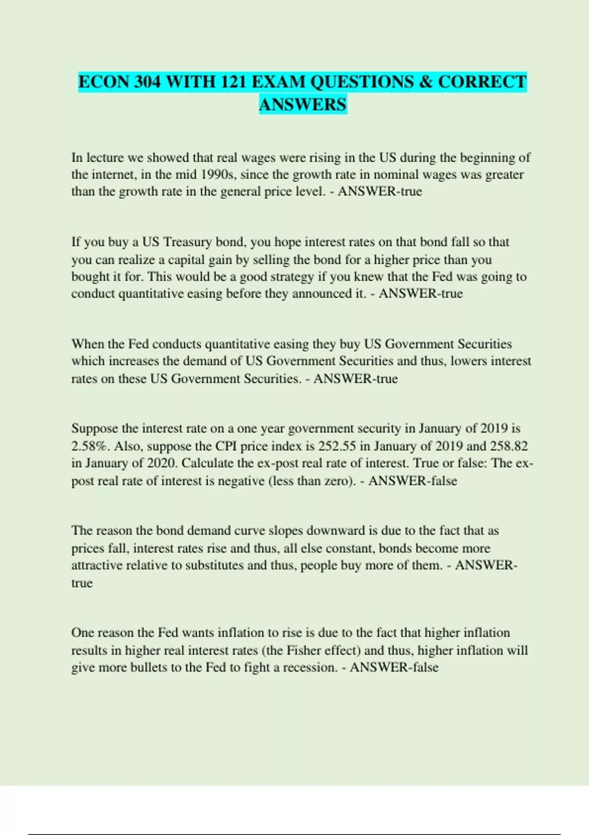 ECON 304 WITH 121 EXAM QUESTIONS & CORRECT ANSWERS ECON 304 WITH 121 EXAM QUESTIONS & CORRECT ANSWERS