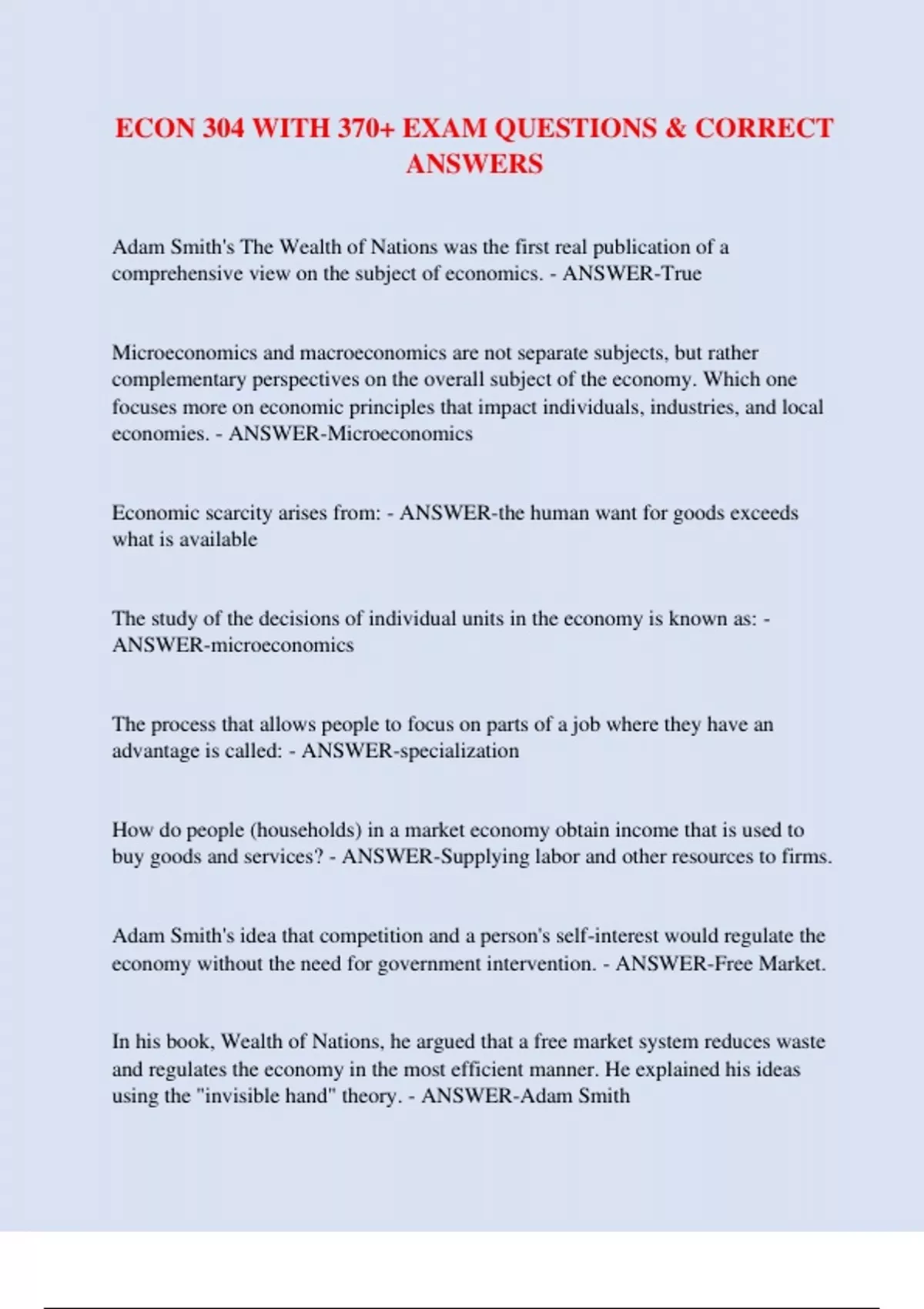 ECON 304 WITH 370+ EXAM QUESTIONS & CORRECT