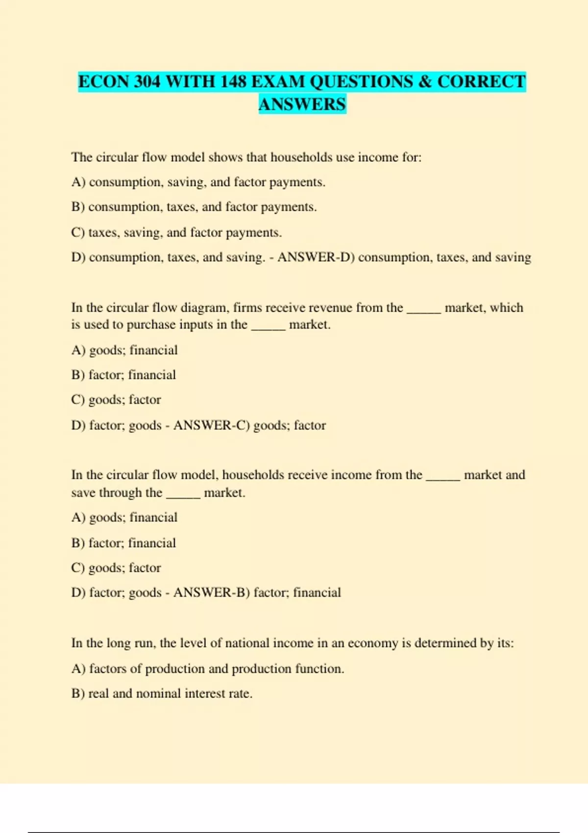 ECON 304 WITH 148 EXAM QUESTIONS & CORRECT ANSWERS ECON 304 WITH 148 EXAM QUESTIONS & CORRECT ANSWERS