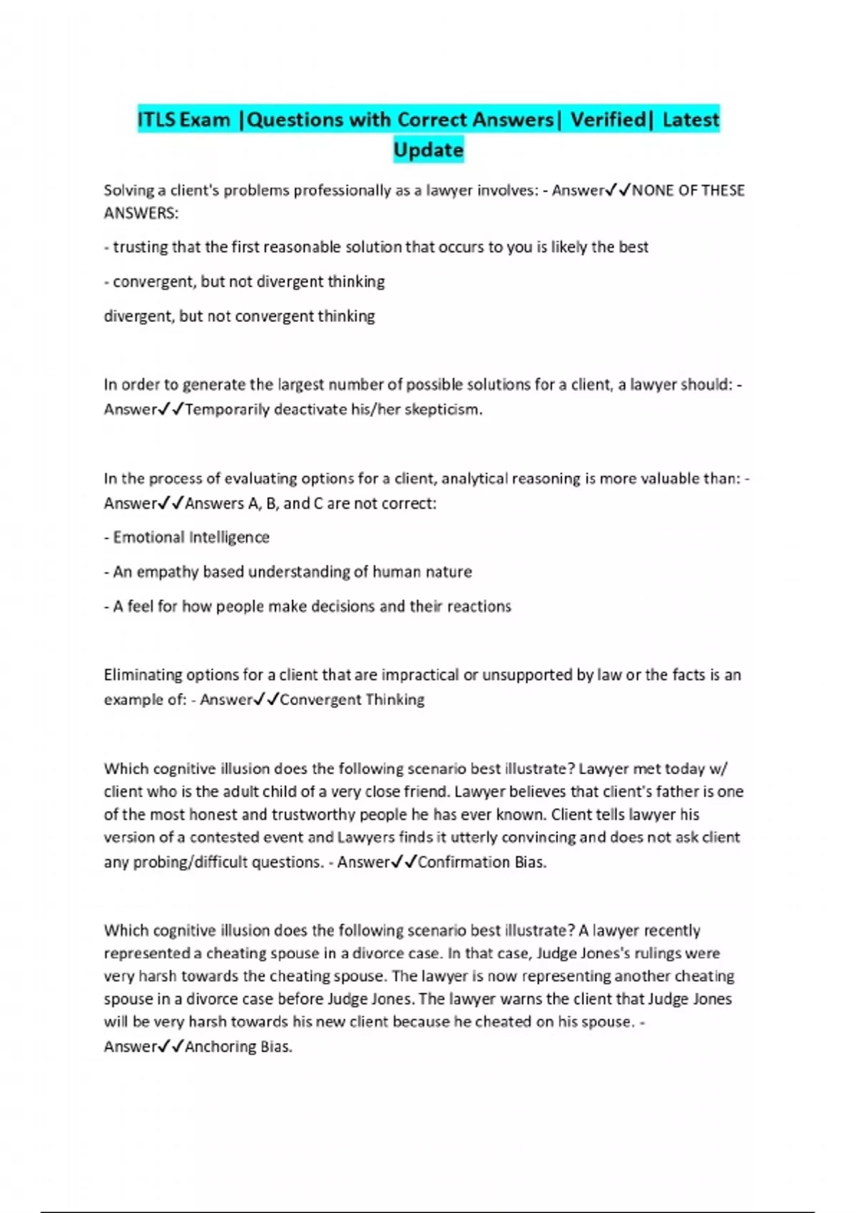 ITLS Exam |Questions with Correct Answers| Verified| Latest Update