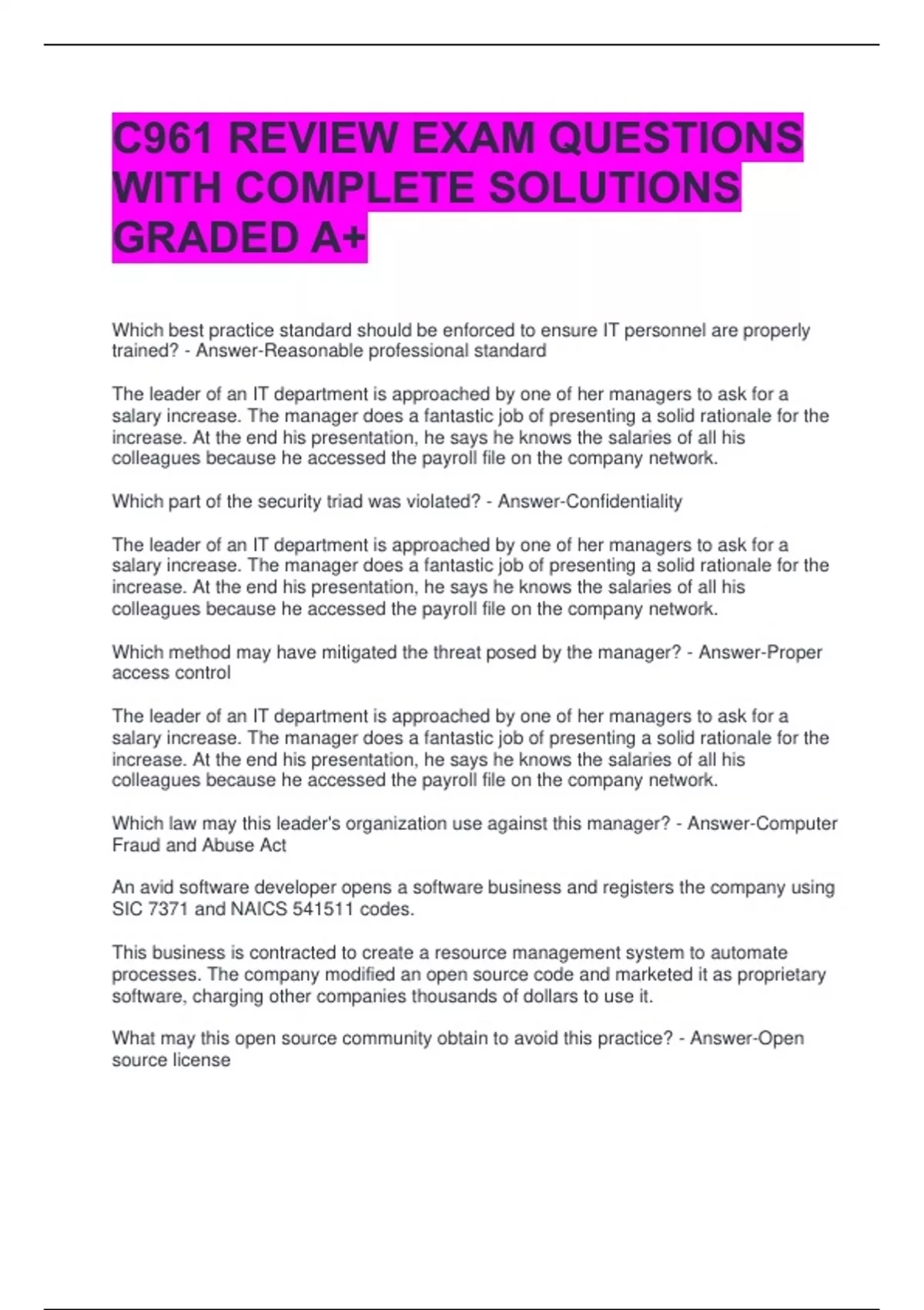 Which part of the security triad was violated? - Answer-Confidentiality