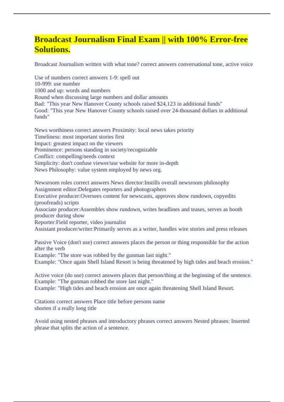 Broadcast Journalism written with what tone? correct answers conversational tone, active voice