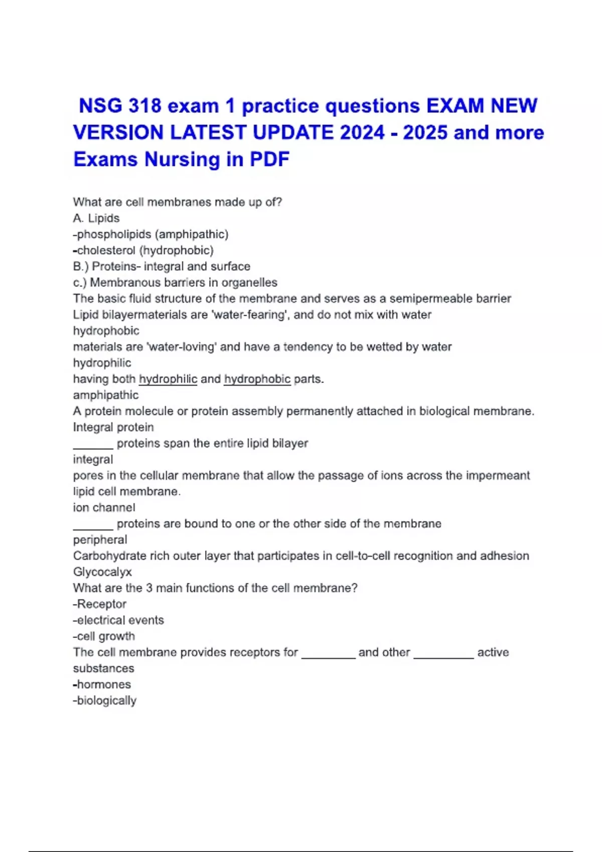 NSG 318 exam 1 practice questions EXAM Questions and Answers |100% Verified Correct Answers | complete solution | Grade A+