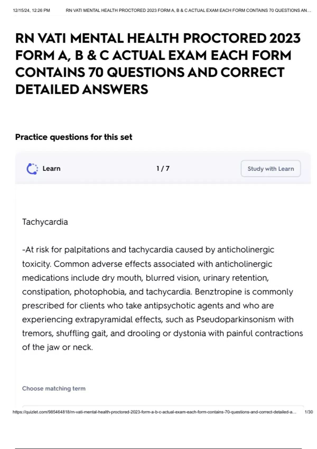 12/15/24, 12:26 PM RN VATI MENTAL HEALTH PROCTORED 2023 FORM A, B & C ACTUAL EXAM EACH FORM CONTAINS 70 QUESTIONS AN…