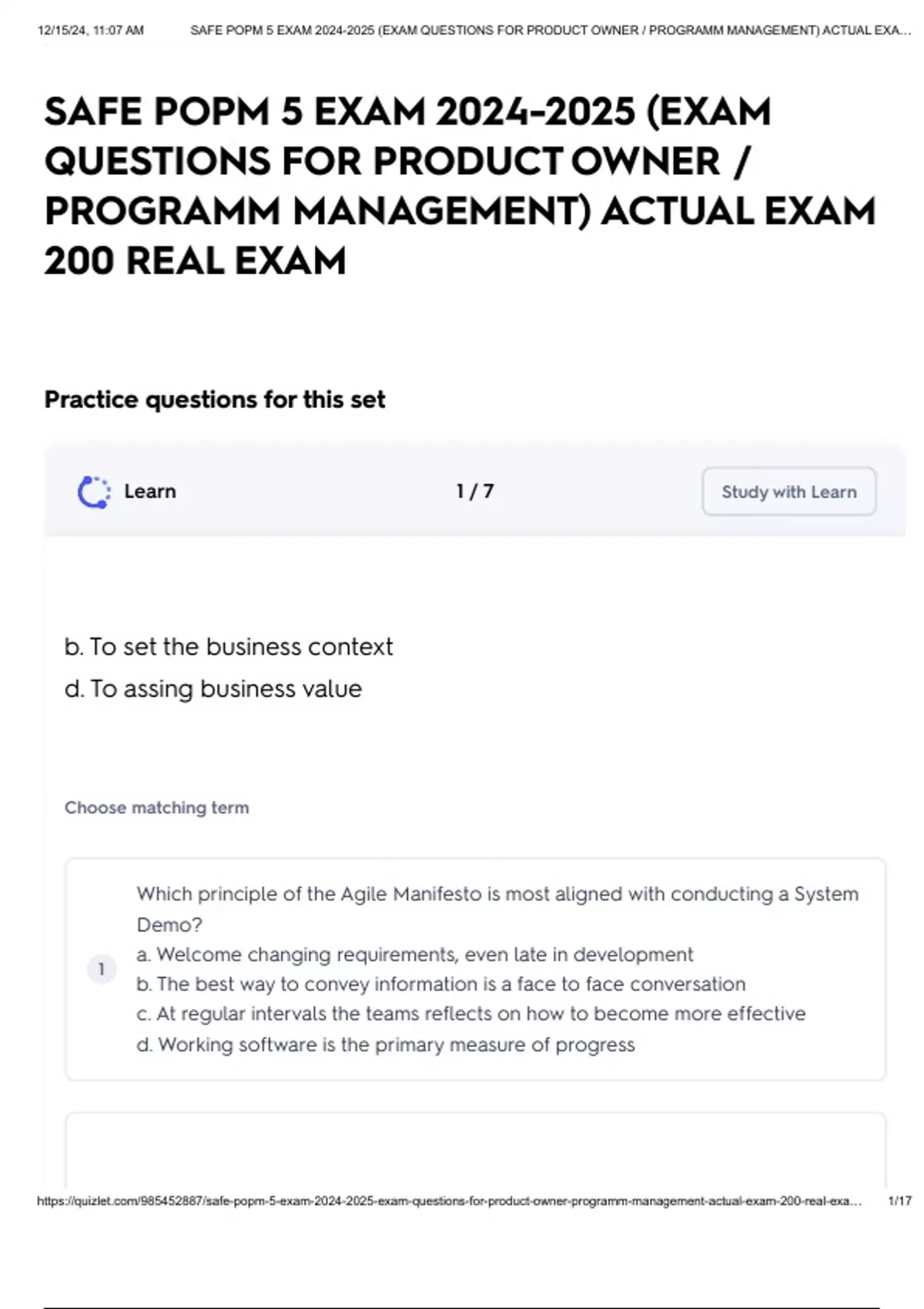 https://quizlet.com/985452887/safe-popm-5-exam-2024-2025-exam-questions-for-product-owner-programm-management-actual-exam-200-real-exa… 1/17