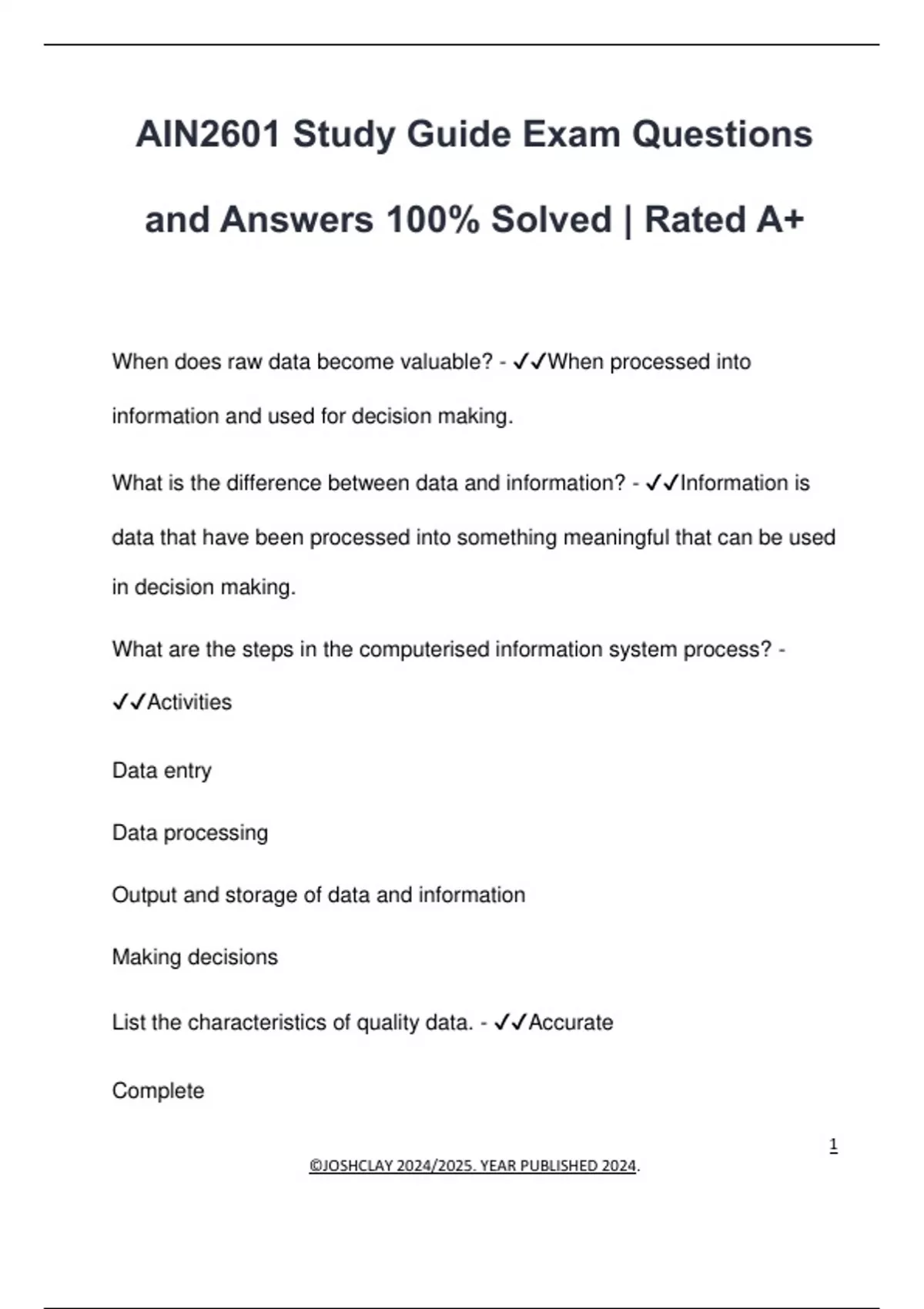 List the characteristics of quality data. - ✔✔Accurate