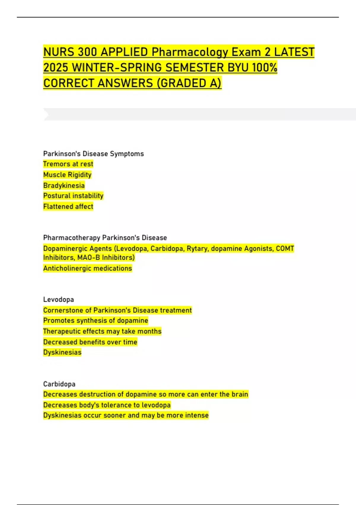 NURS 300 APPLIED Pharmacology Exam 2 LATEST