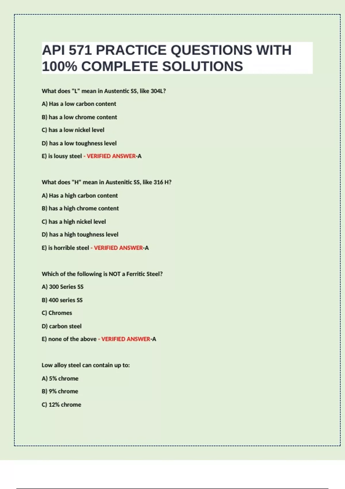 E) all stainless steel - VERIFIED ANSWER-C