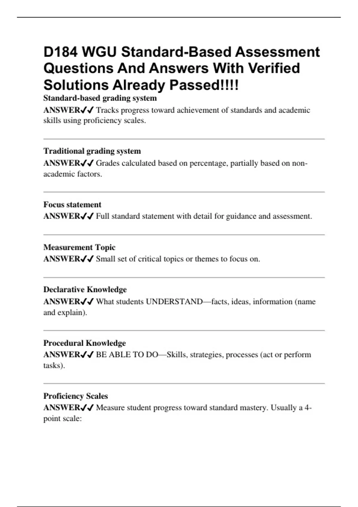 D184 WGU Standard-Based Assessment Questions And Answers With Verified Solutions Already Passed!!!!