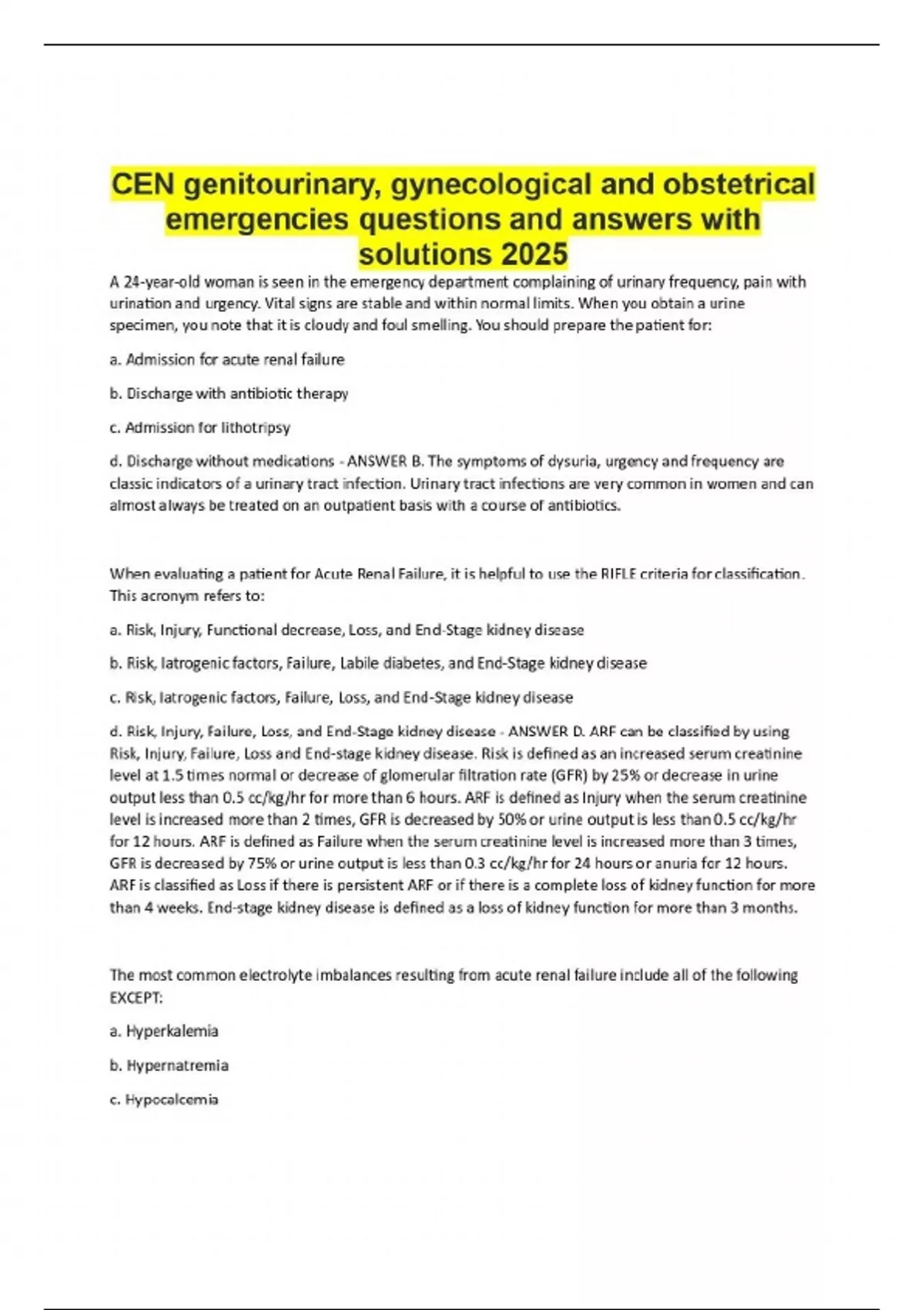 CEN genitourinary, gynecological and obstetrical emergencies questions and answers with solutions 2025