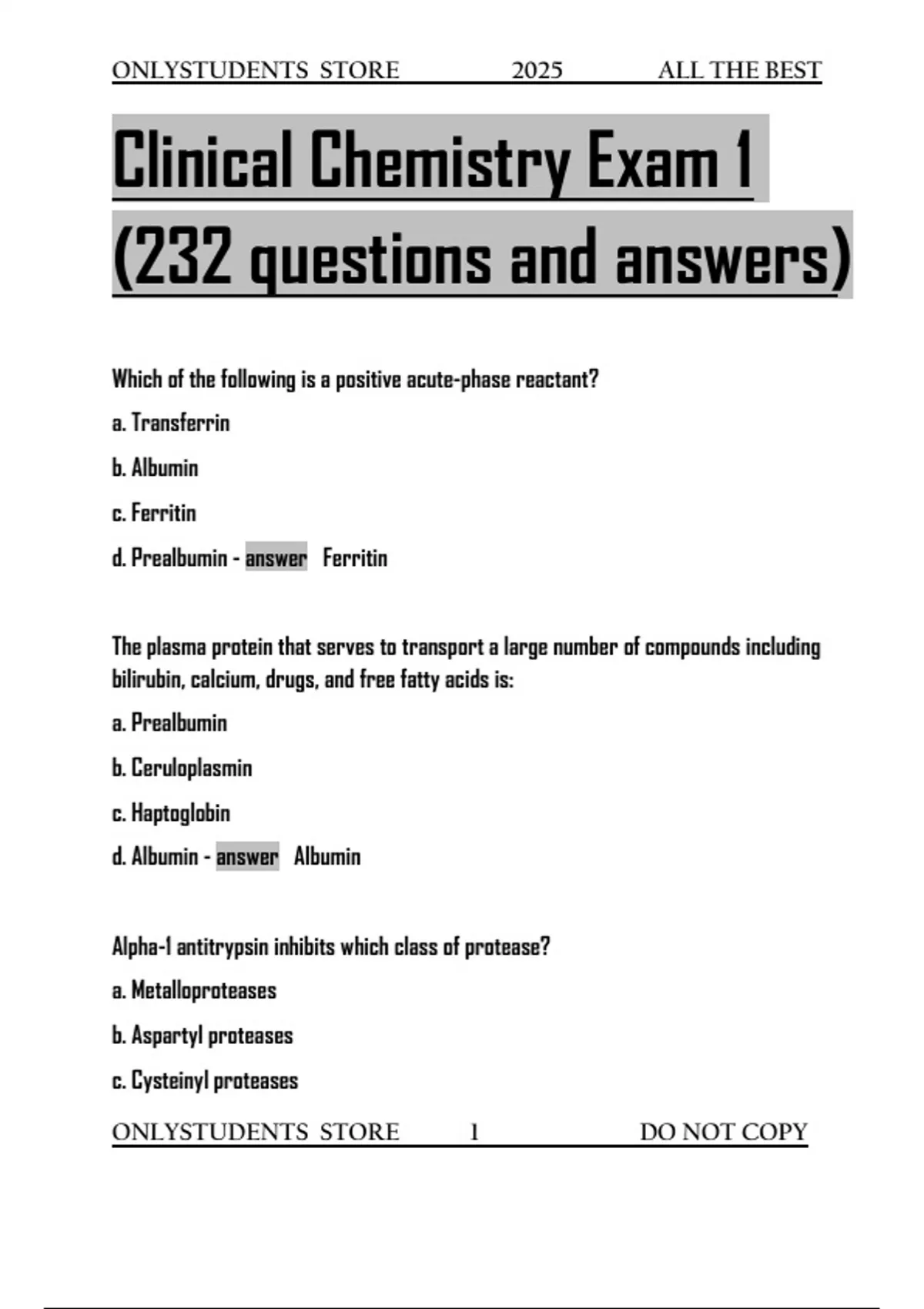 d. Albumin - answer Albumin