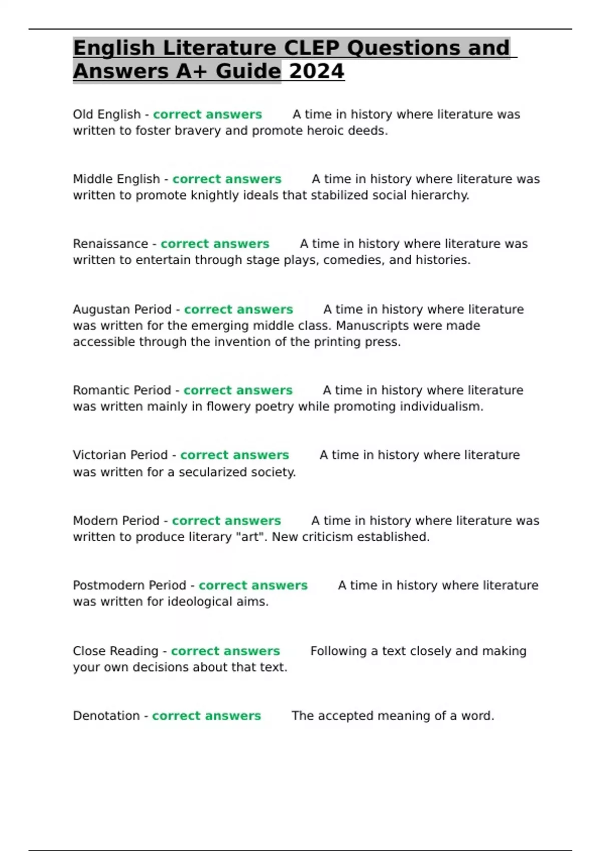 Old English - correct answers✅✅A time in history where literature was