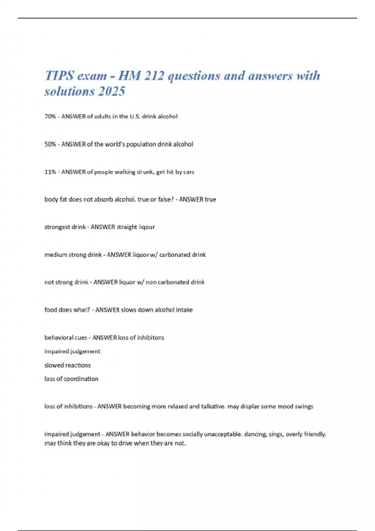 TIPS exam - HM 212 questions and answers with solutions 2025