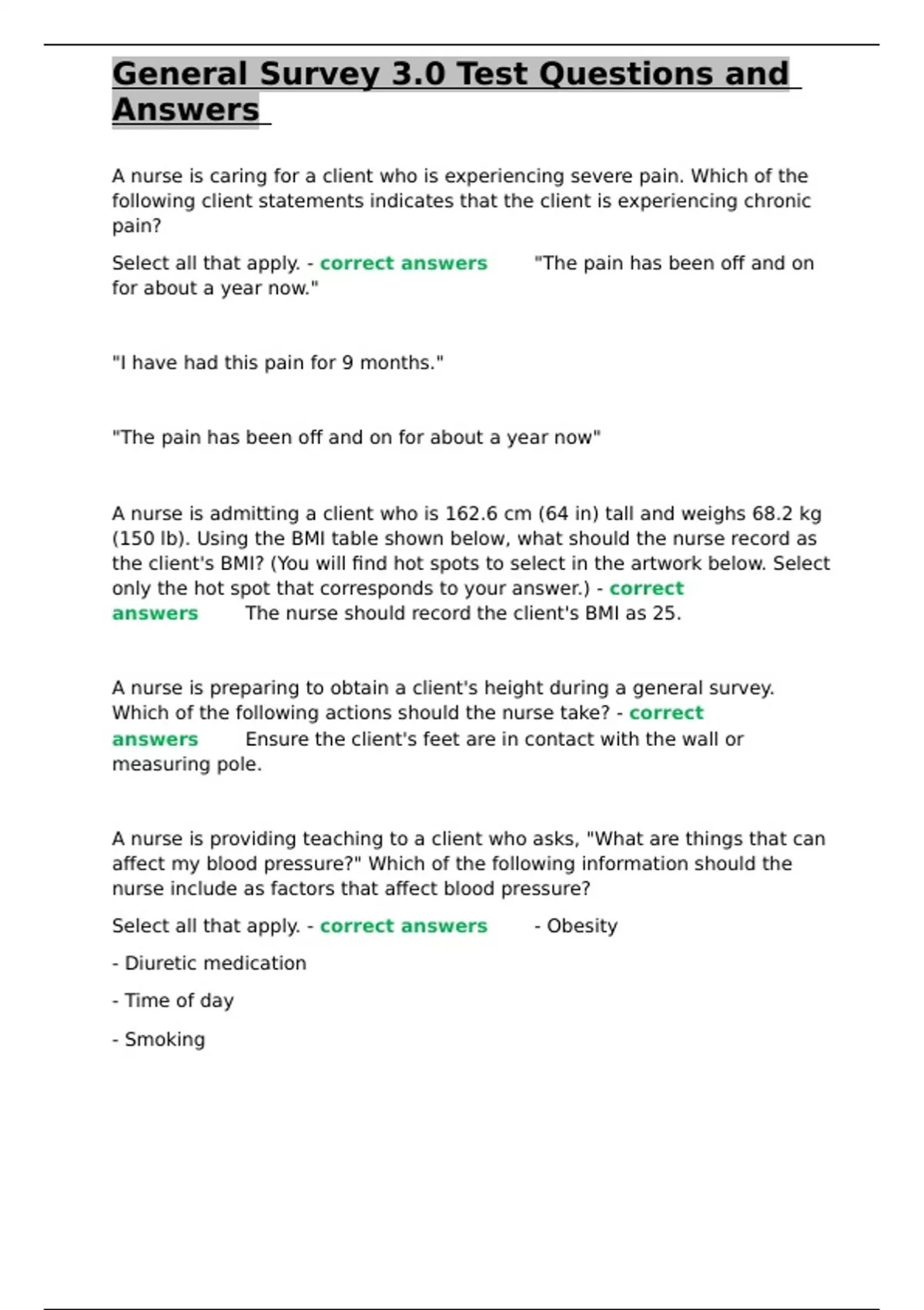 A nurse is admitting a client who is 162.6 cm (64 in) tall and weighs 68.2 kg