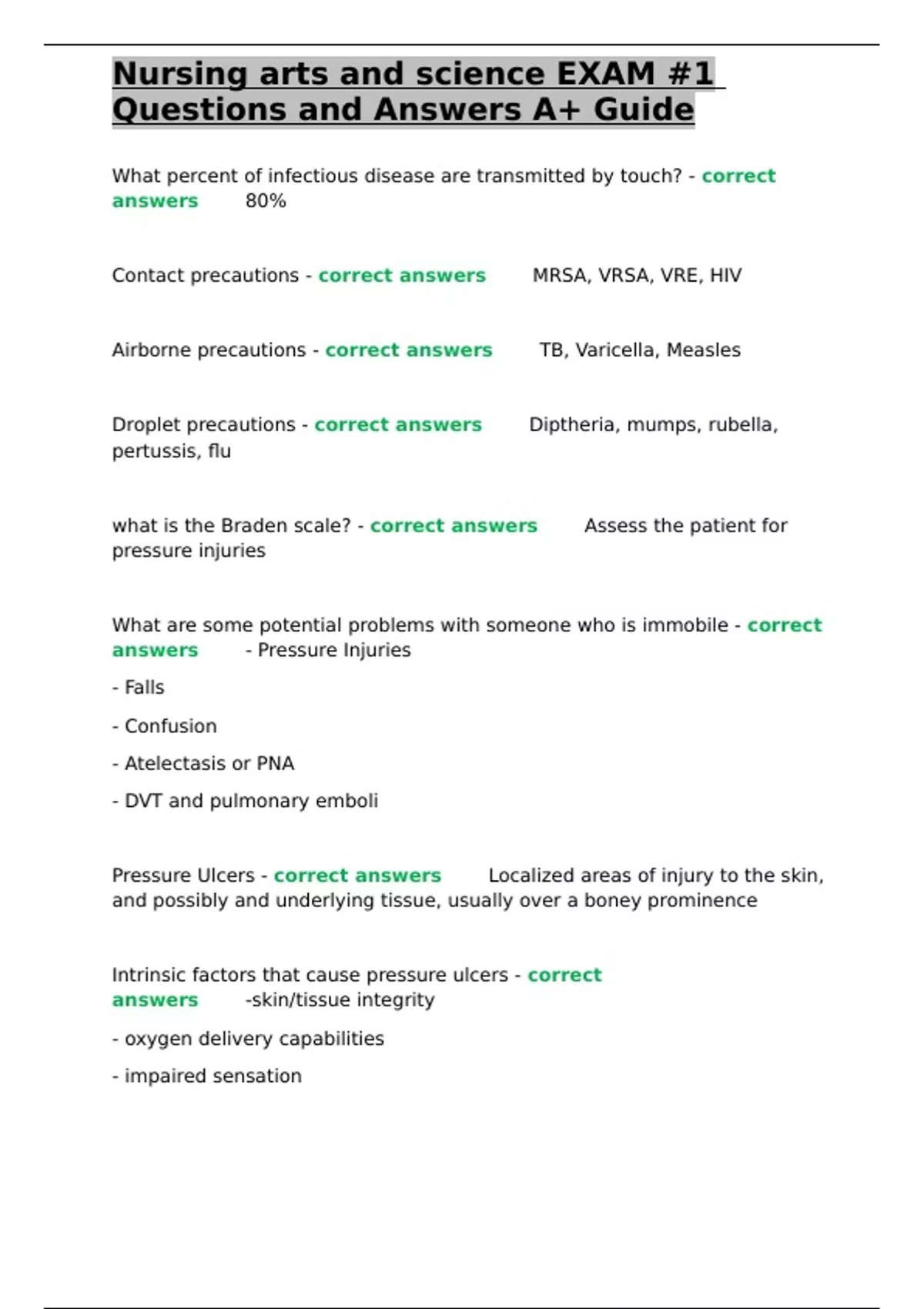answers✅✅- Pressure Injuries