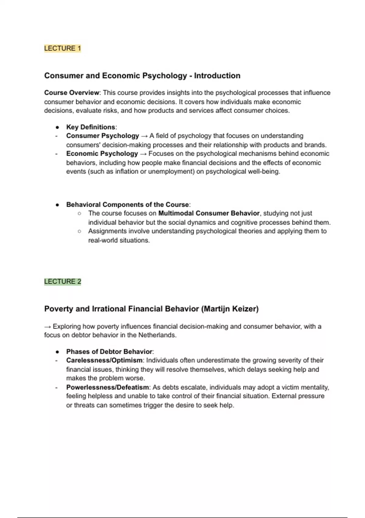 Summary Lectures- Consumer and economic psychology (PSB3E-SP06)