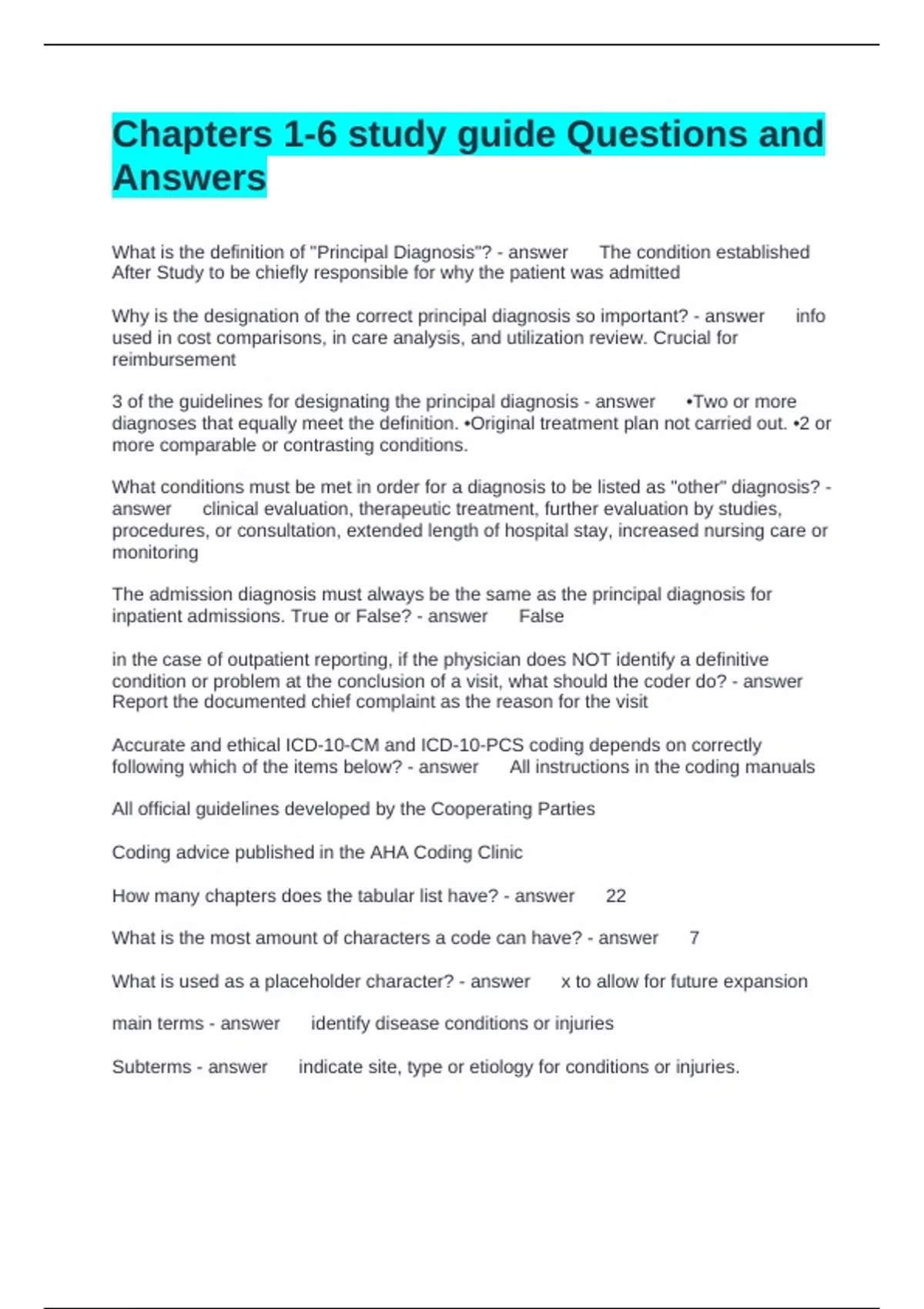 3 of the guidelines for designating the principal diagnosis - answer •Two or more