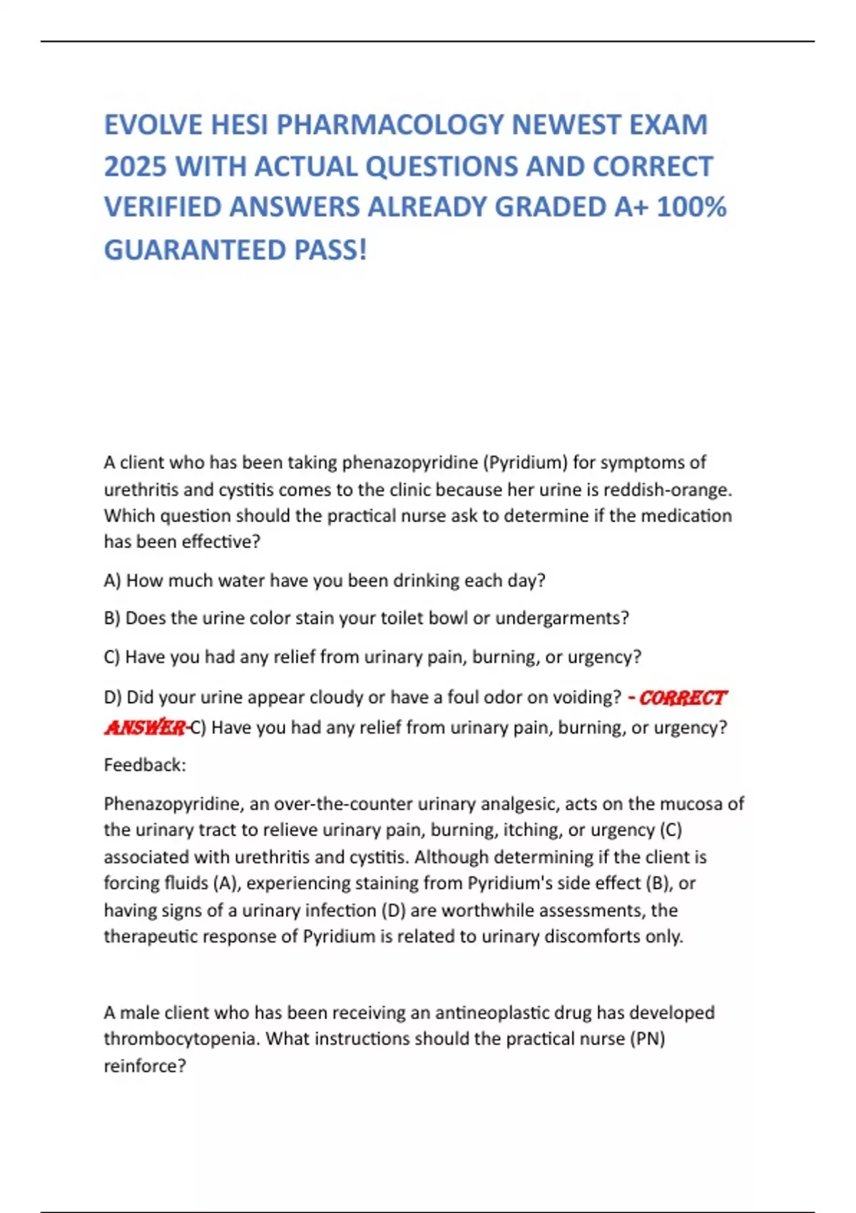 A client who has been taking phenazopyridine (Pyridium) for symptoms of
