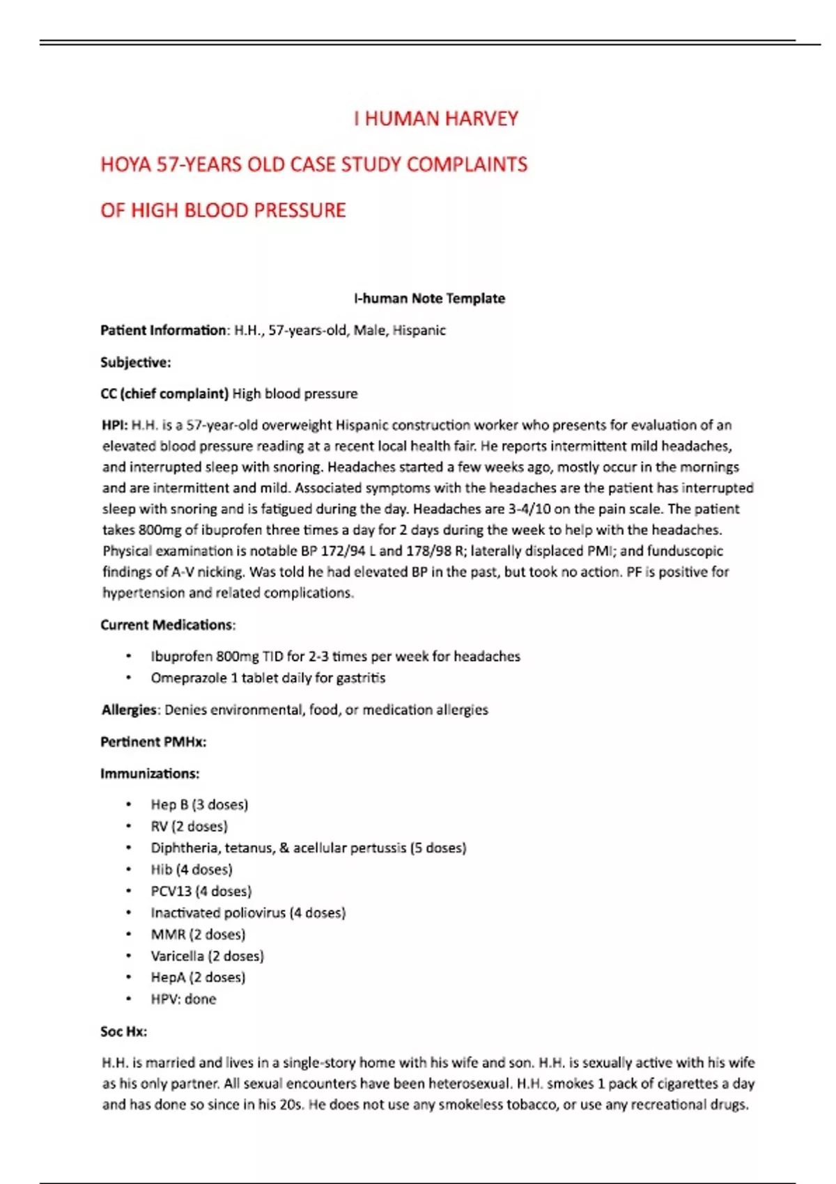 I HUMAN HARVEY HOYA 57-YEARS OLD CASE STUDY COMPLAINTS OF HIGH BLOOD PRESSURE