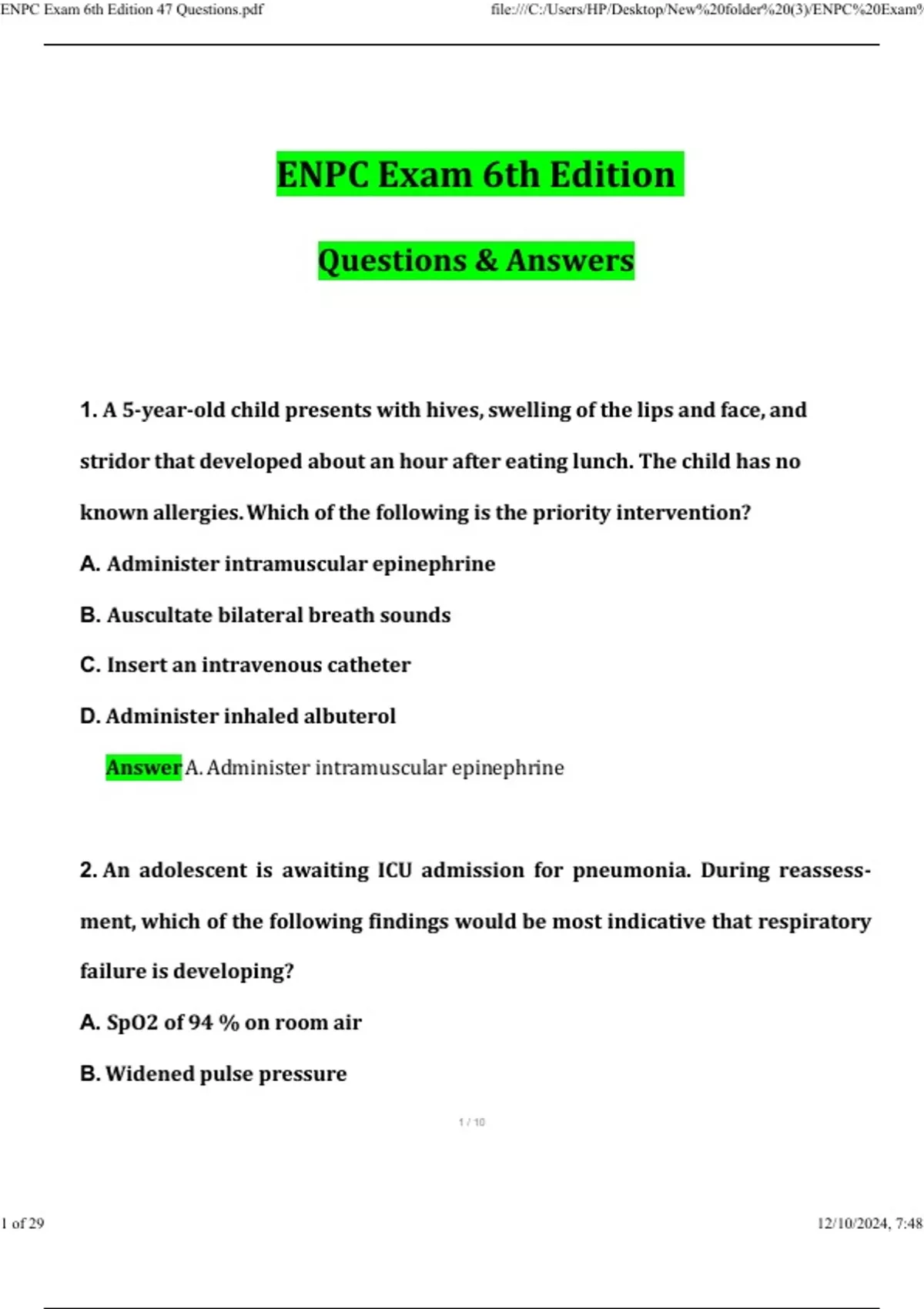 ,ENPC Exam 6th Edition 47 Questions.pdf file:///C:/Users/HP/Desktop/New%20folder%20(3)/ENPC%20Exam%