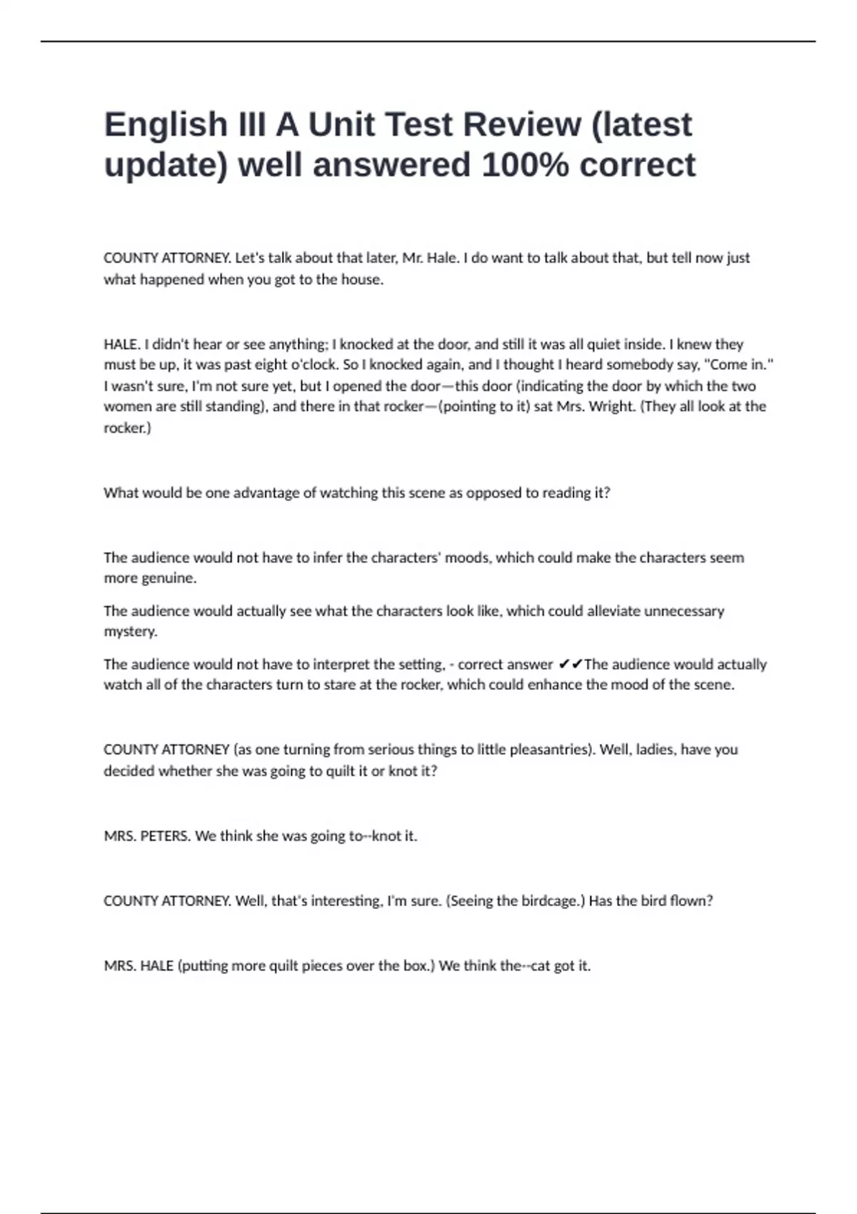 English III A Unit Test Review (latest update) well answered 100% correct
