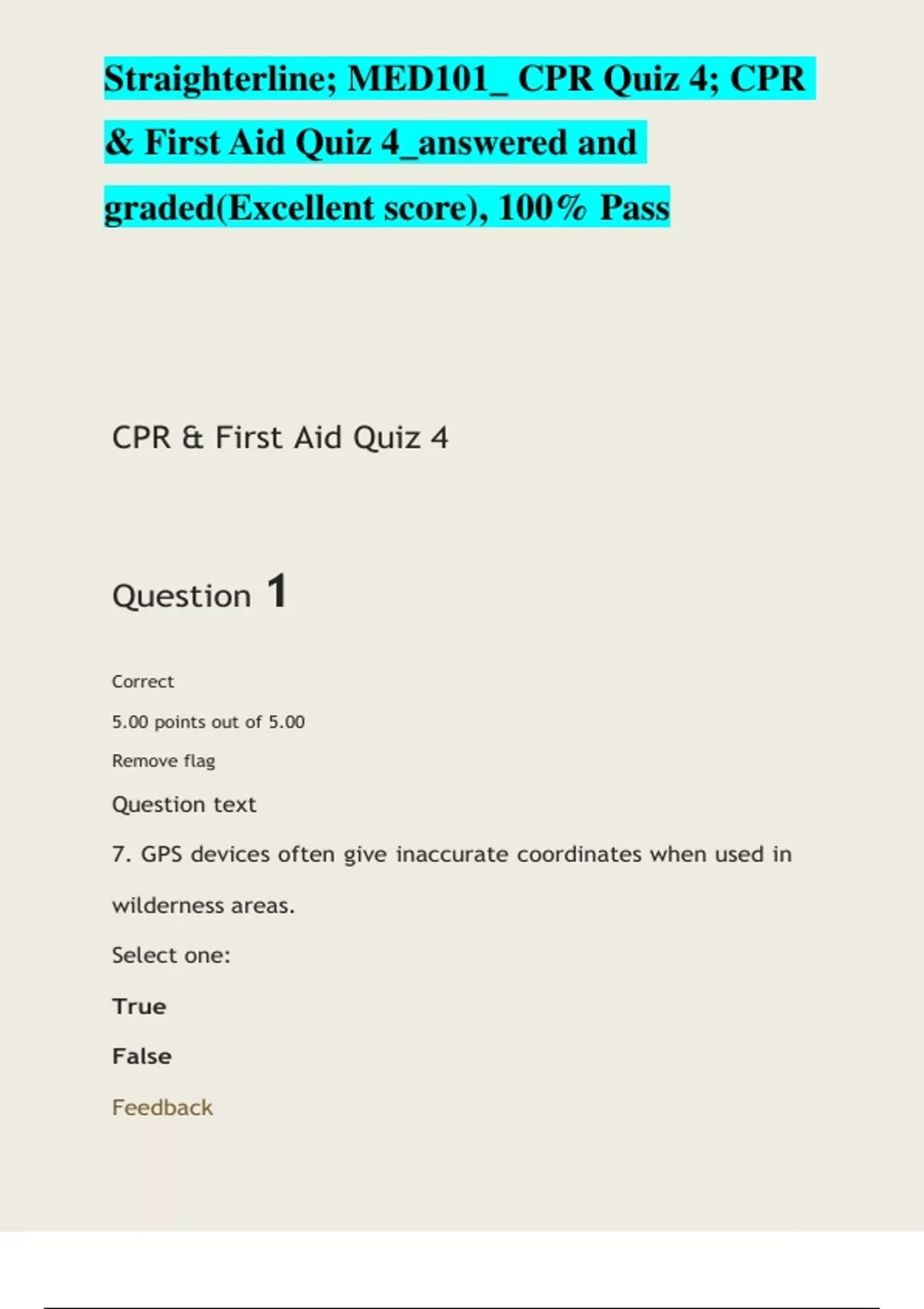 ,Straighterline; MED101_ CPR Quiz 4; CPR