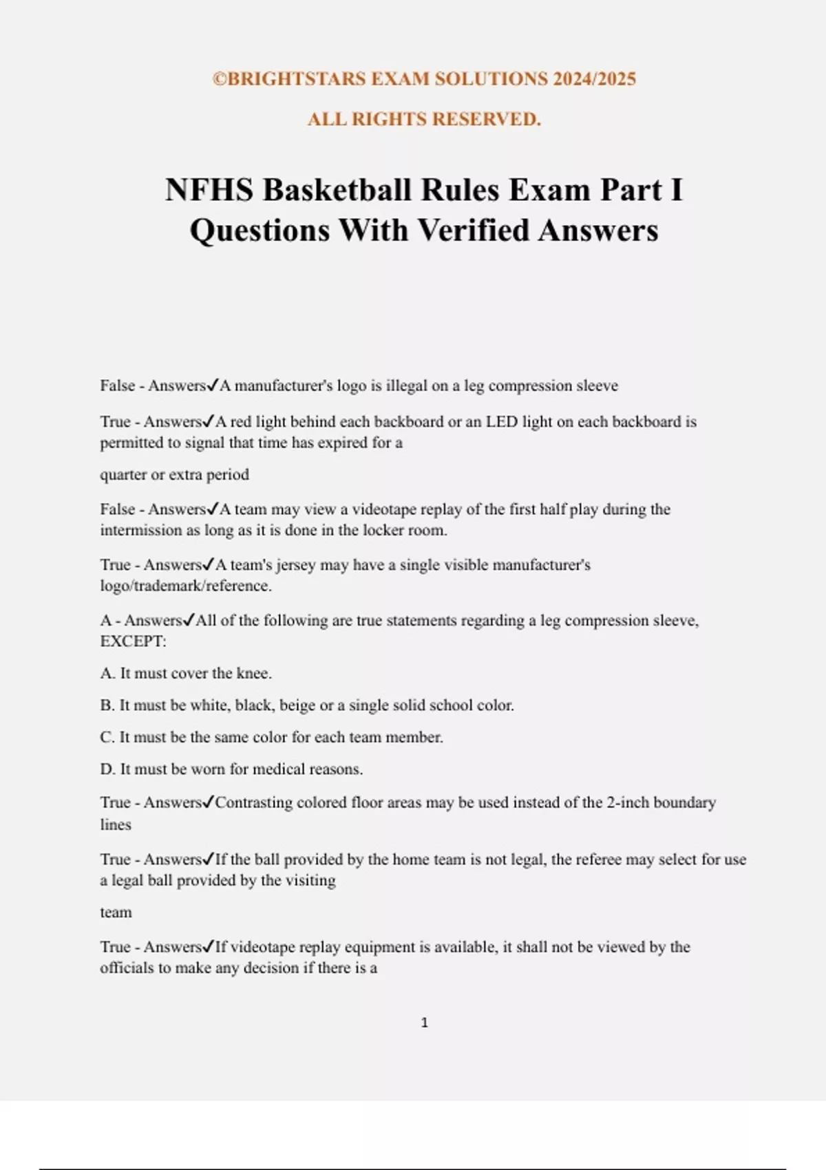 True - Answers✔Lane spaces on each side of the free-throw lane are marked only 8 inches deep