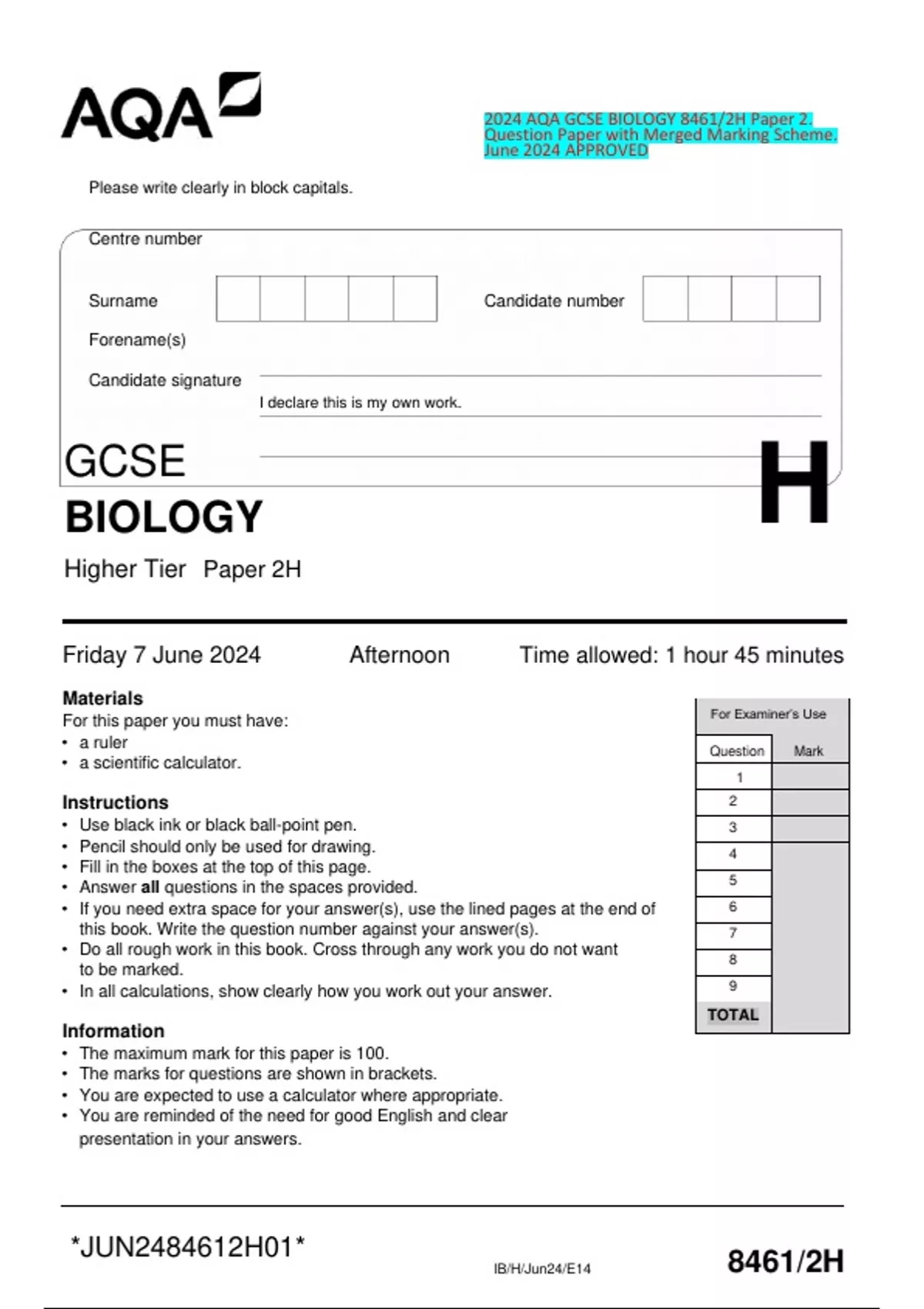 Friday 7 June 2024 Afternoon Time allowed: 1 hour 45 minutes