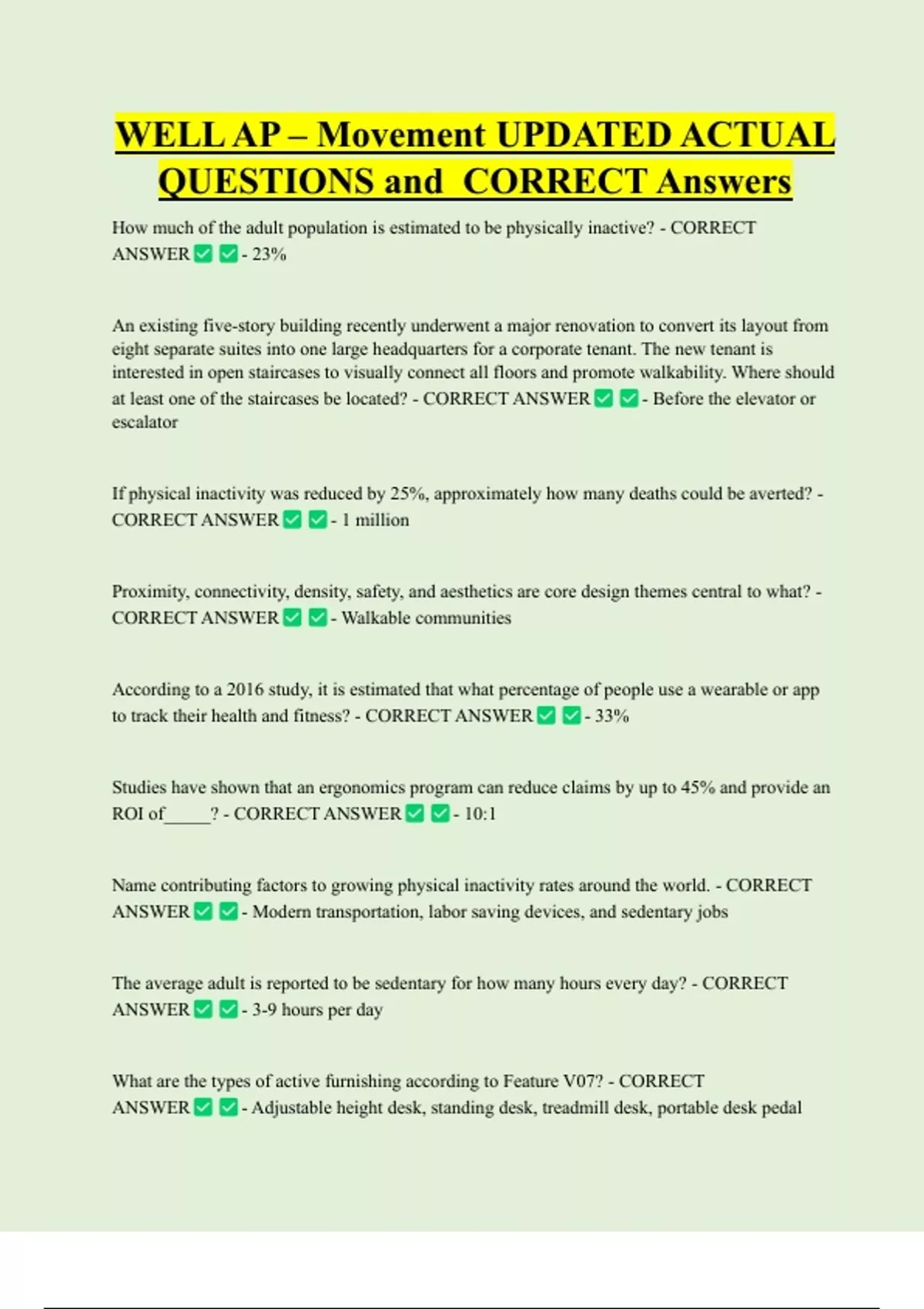 WELL AP – Movement UPDATED ACTUAL QUESTIONS and CORRECT Answers