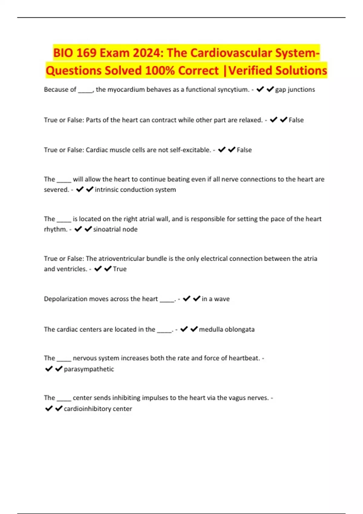 True or False: Parts of the heart can contract while other part are relaxed. - ✔✔False