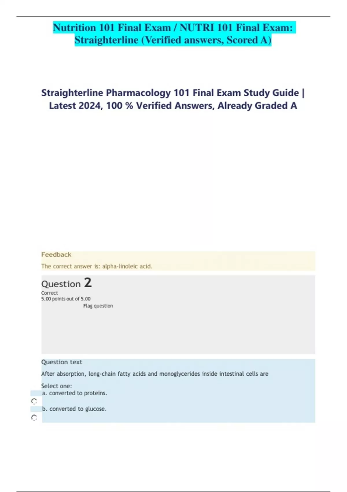 Straighterline Pharmacology 101 Final Exam Study Guide |