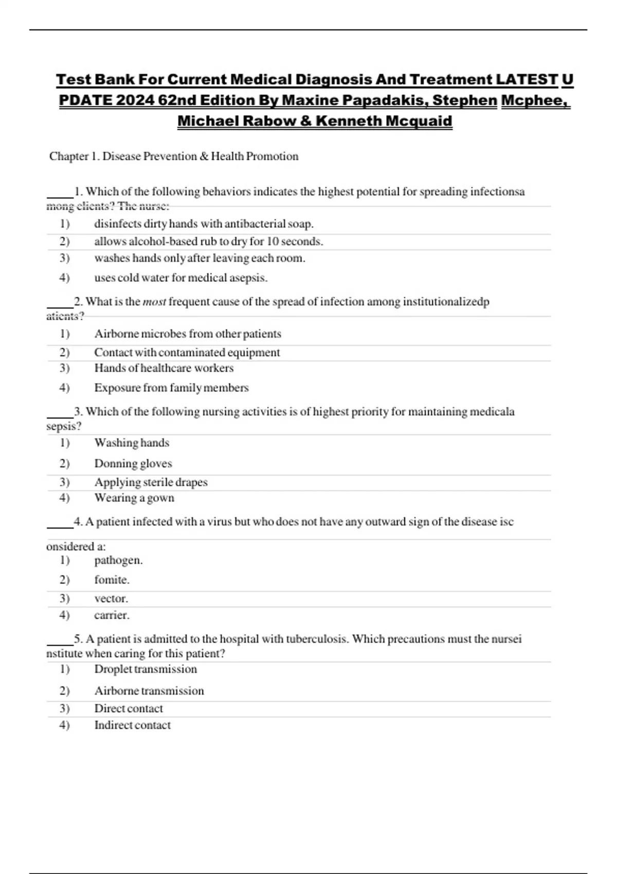 Test Bank For Current Medical Diagnosis And Treatment LATEST U