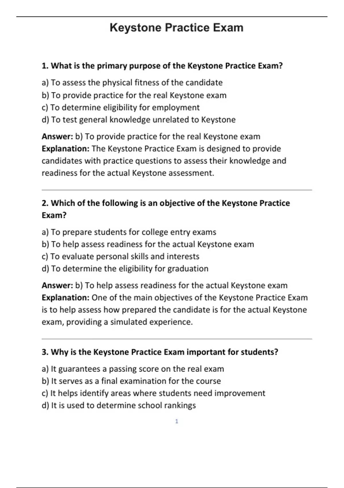 Explanation: One of the main objectives of the Keystone Practice Exam