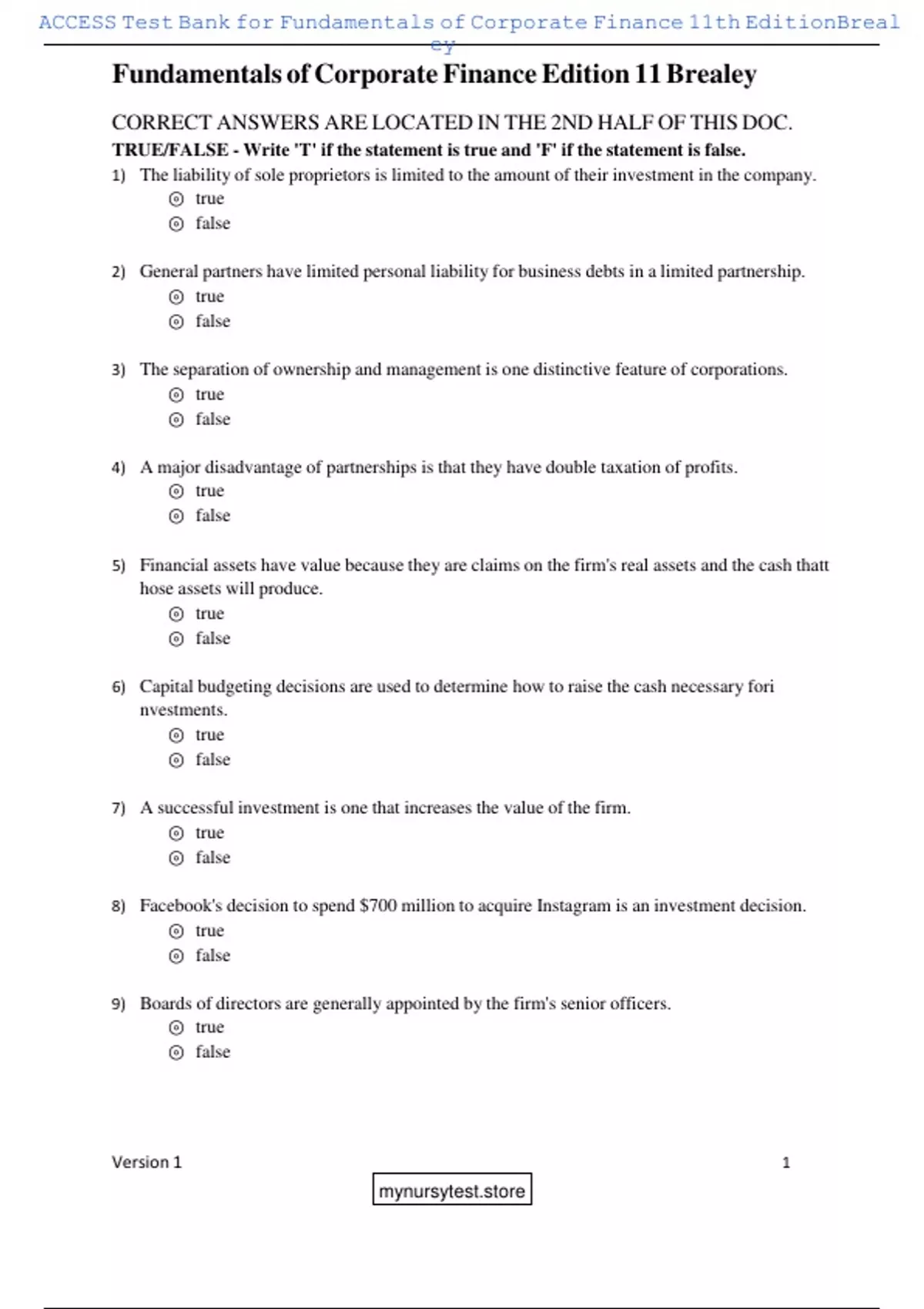 , ACCESS Test Bank for Fundamentals of Corporate Finance 11th EditionBreal