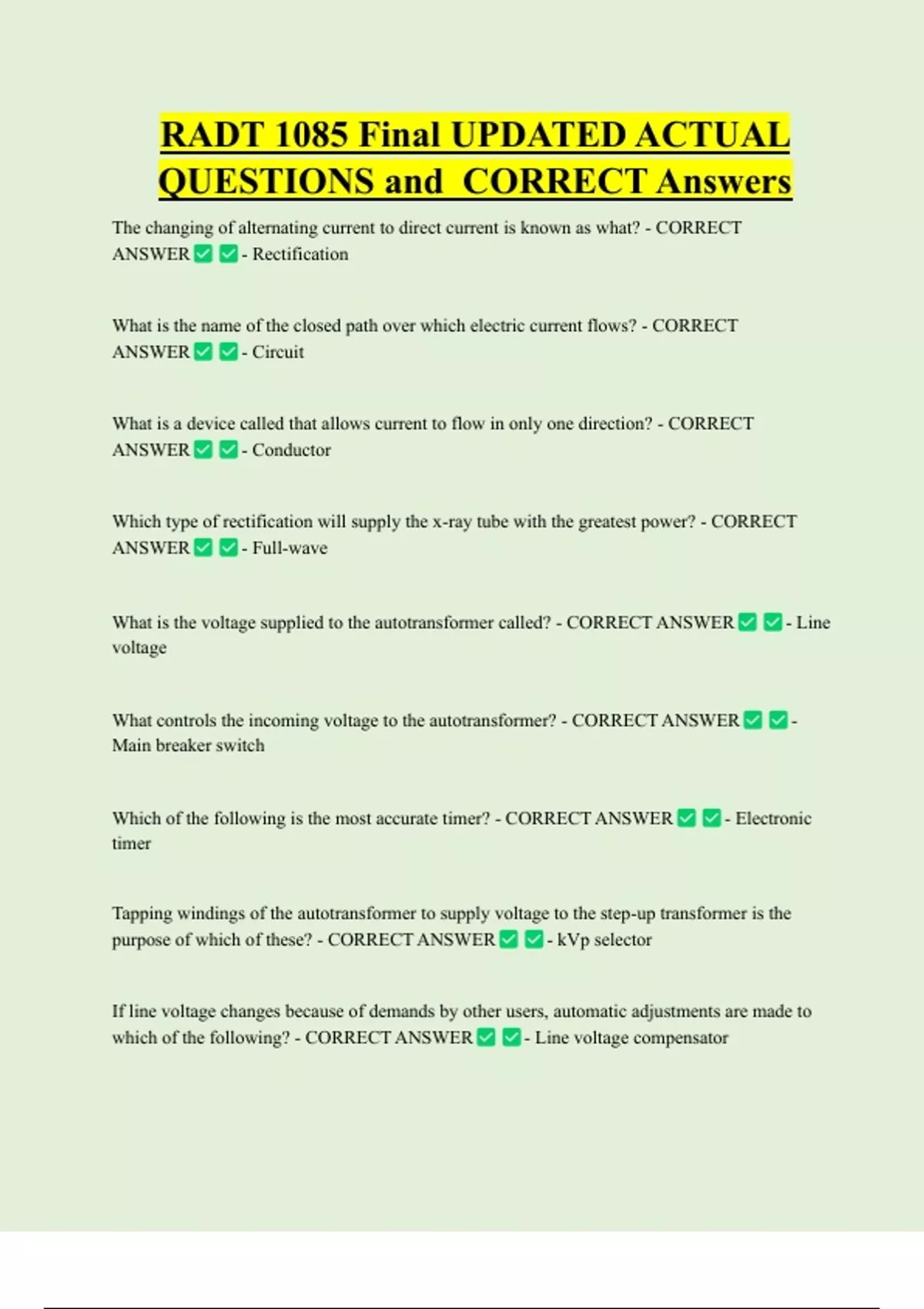 RADT 1085 final UPDATED ACTUAL QUESTIONS and CORRECT Answers