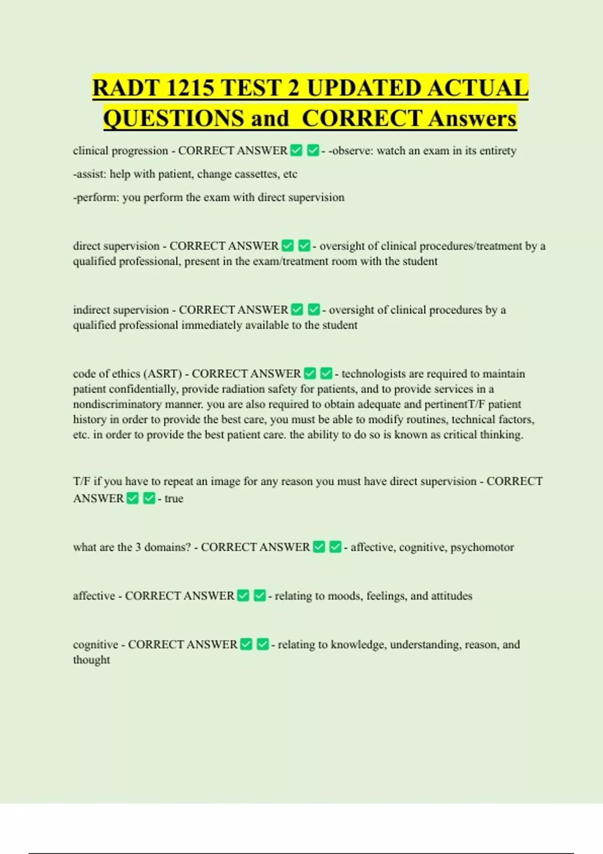 QUESTIONS and CORRECT Answers