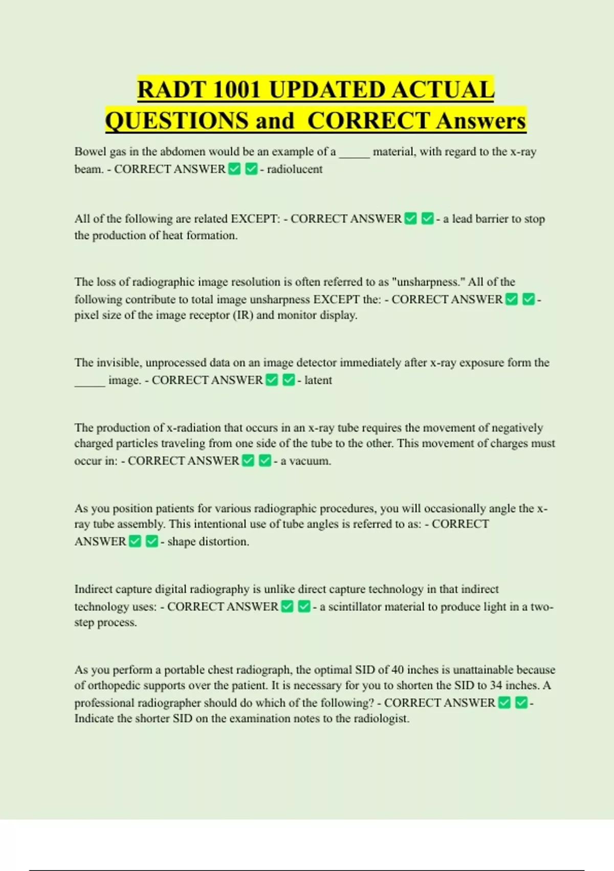 RADT 1001 UPDATED ACTUAL QUESTIONS and CORRECT Answers