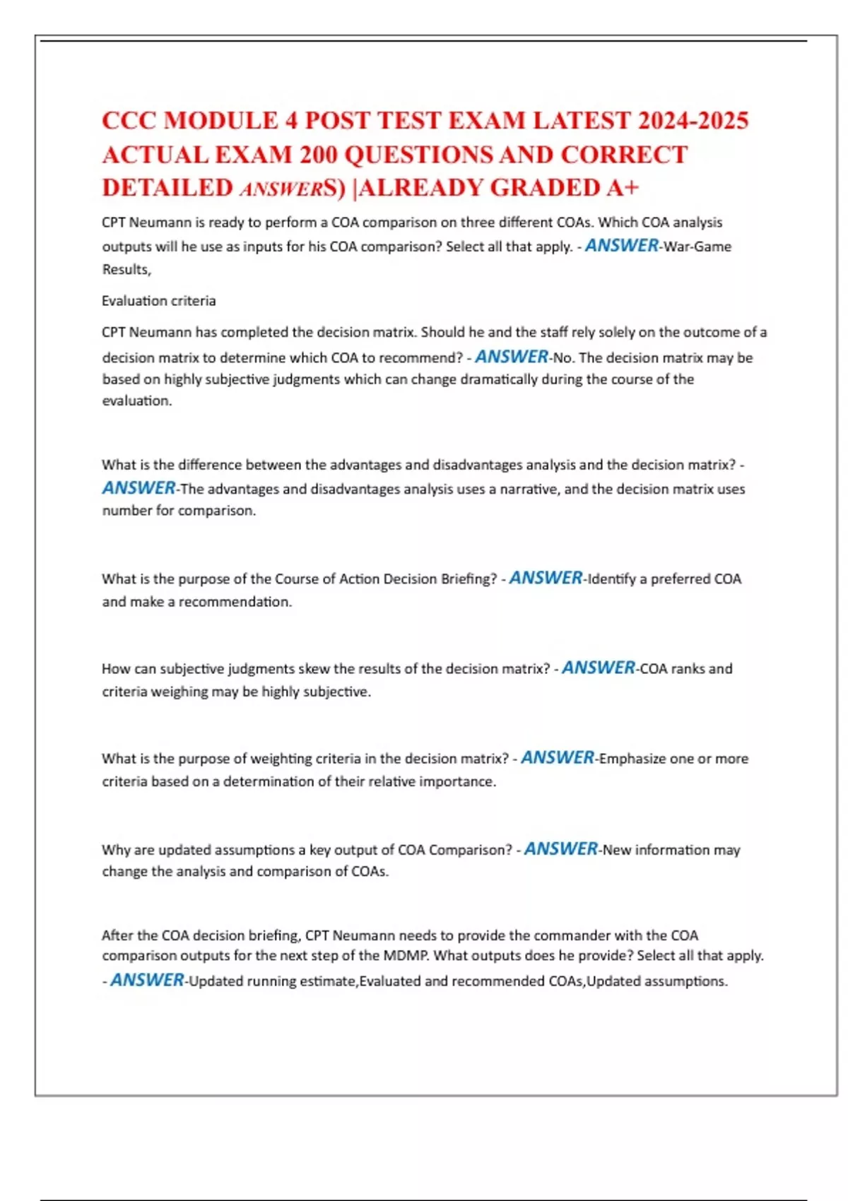 ACTUAL EXAM 200 QUESTIONS AND CORRECT