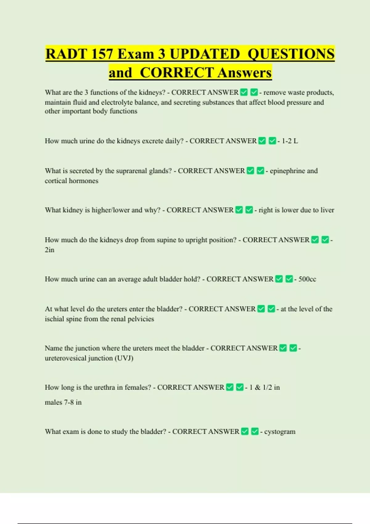 What exam is done to study the bladder? - CORRECT ANSWER - cystogram