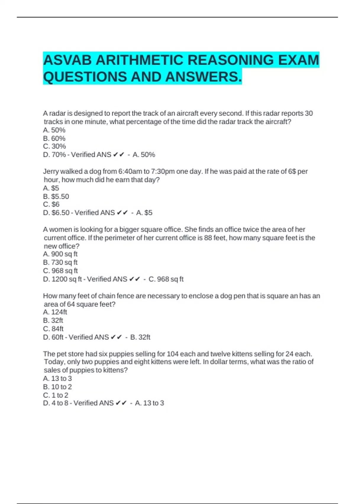 ASVAB ARITHMETIC REASONING EXAM
