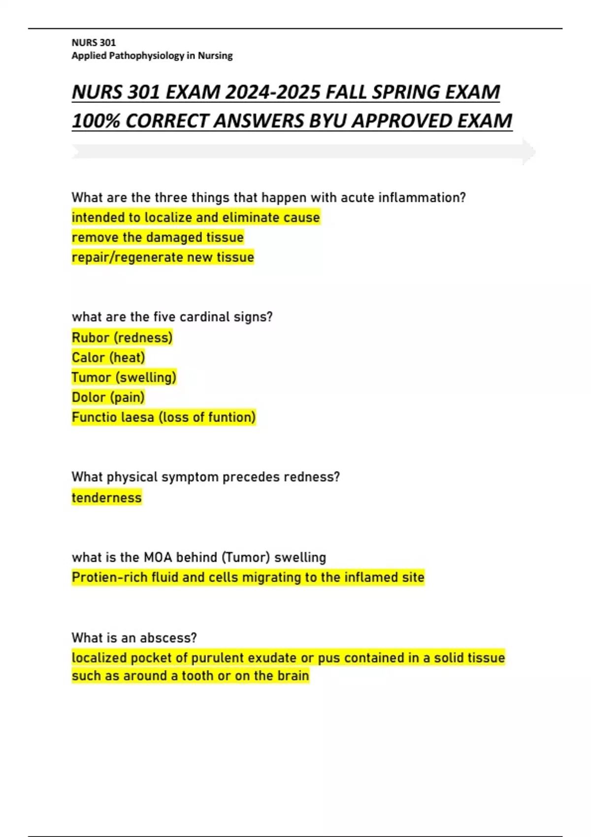 NURS 301 EXAM FALL SPRING EXAM 100% CORRECT ANSWERS BYU APPROVED EXAM