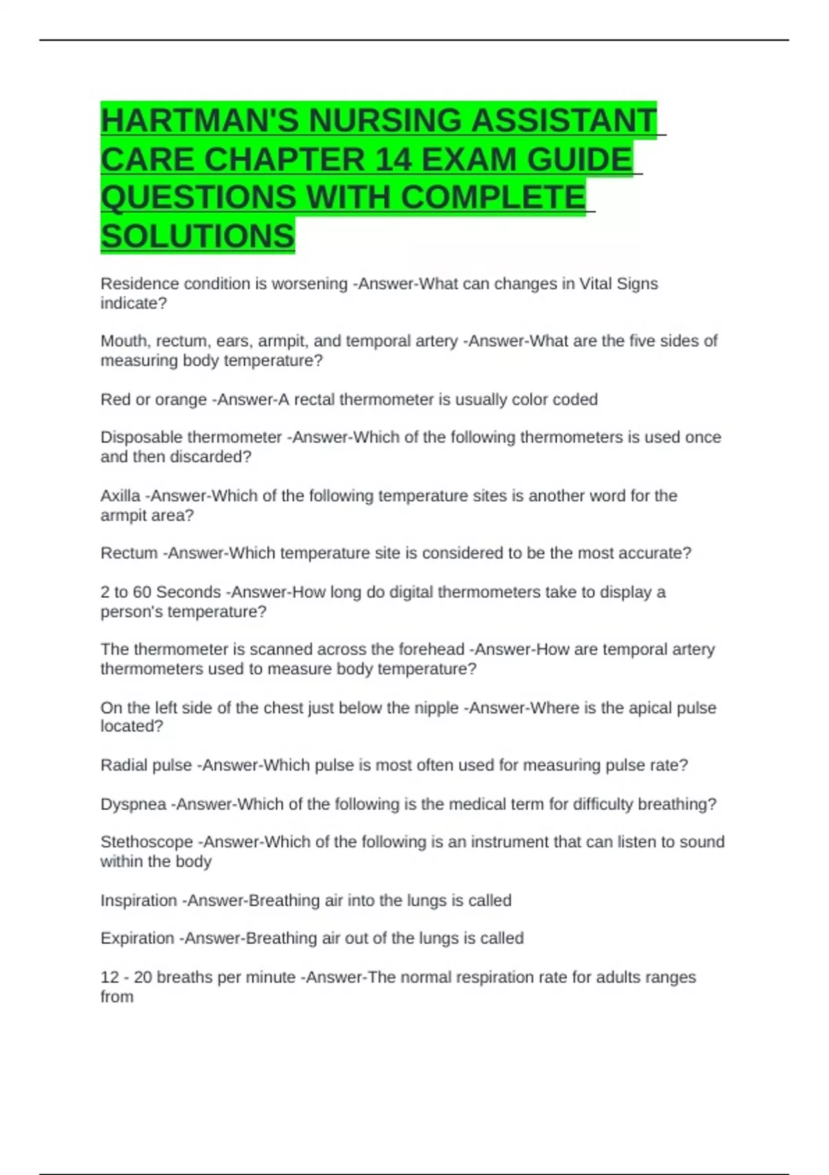 12 - 20 breaths per minute -Answer-The normal respiration rate for adults ranges