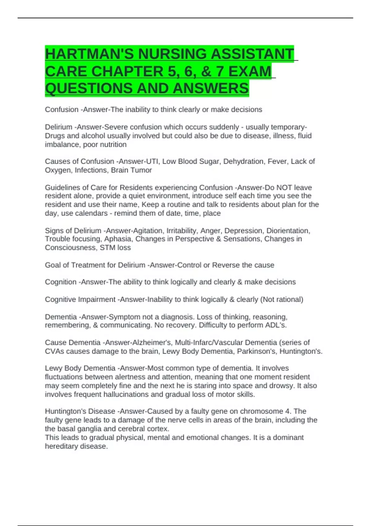 Causes of Confusion -Answer-UTI, Low Blood Sugar, Dehydration, Fever, Lack of