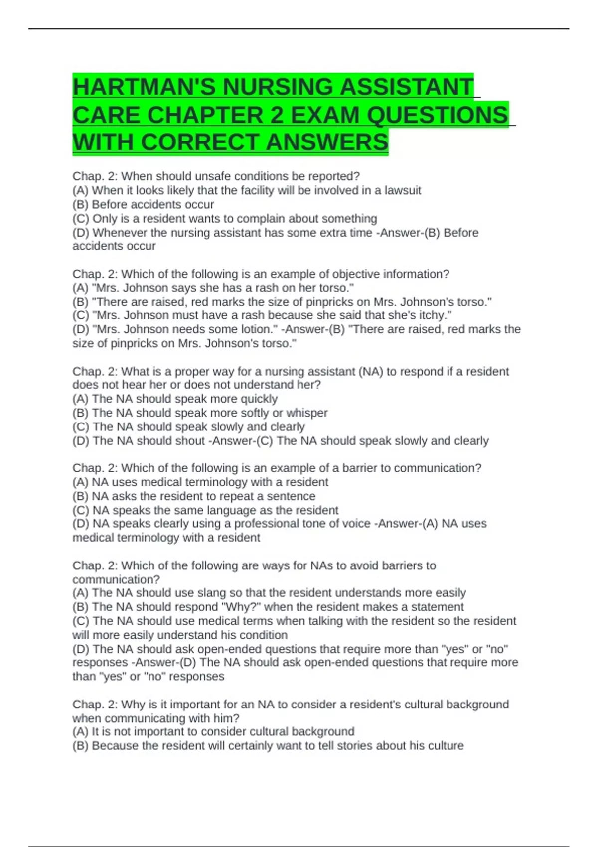 Chap. 2: If a resident has a hearing impairment, the NA should