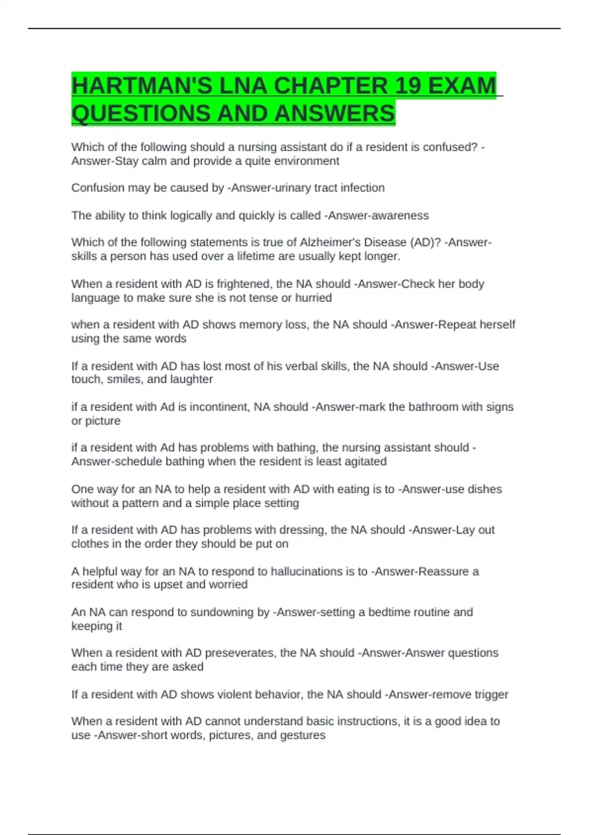 HARTMAN'S LNA CHAPTER 19 EXAM