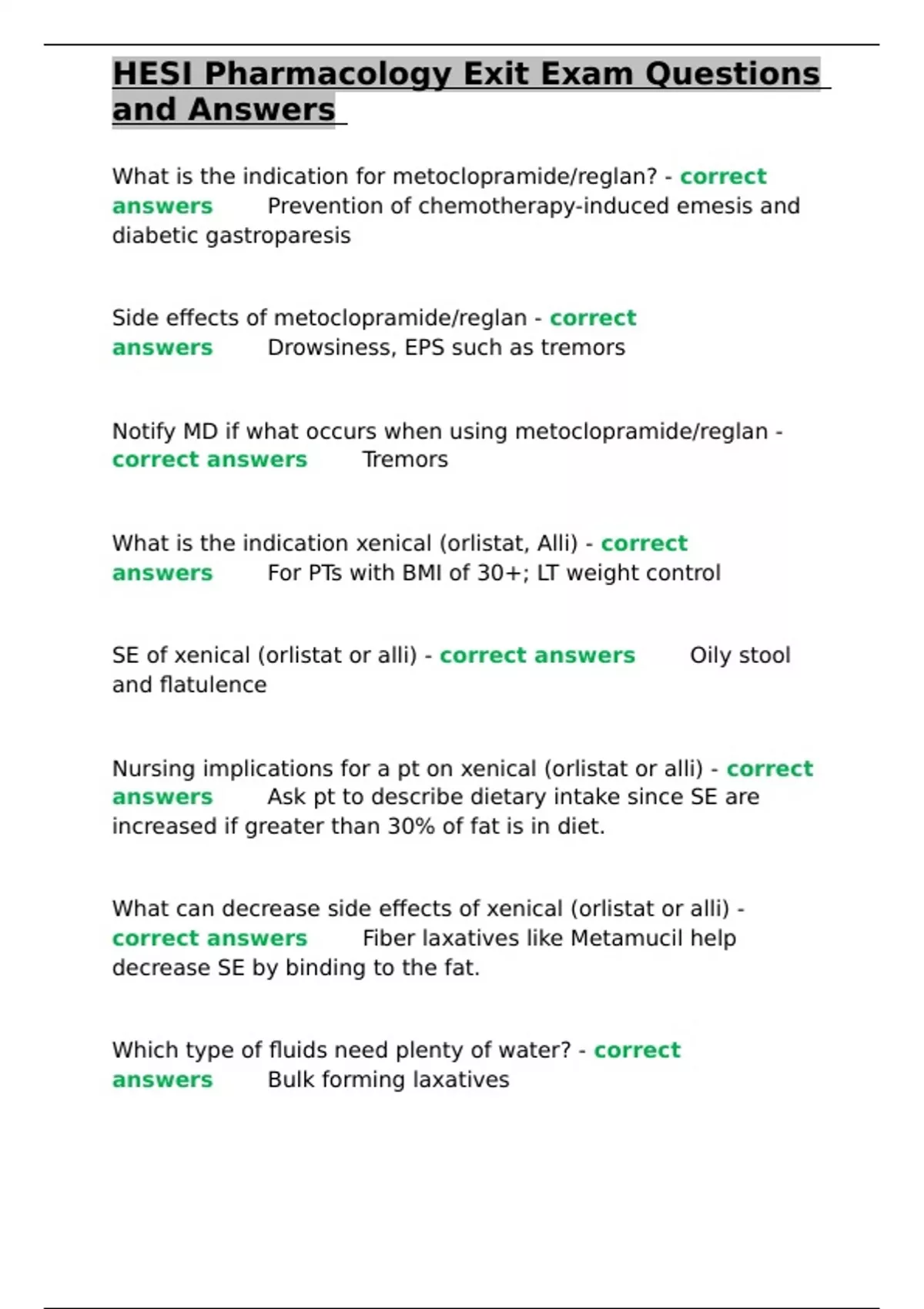 correct answers✅✅Fiber laxatives like Metamucil help