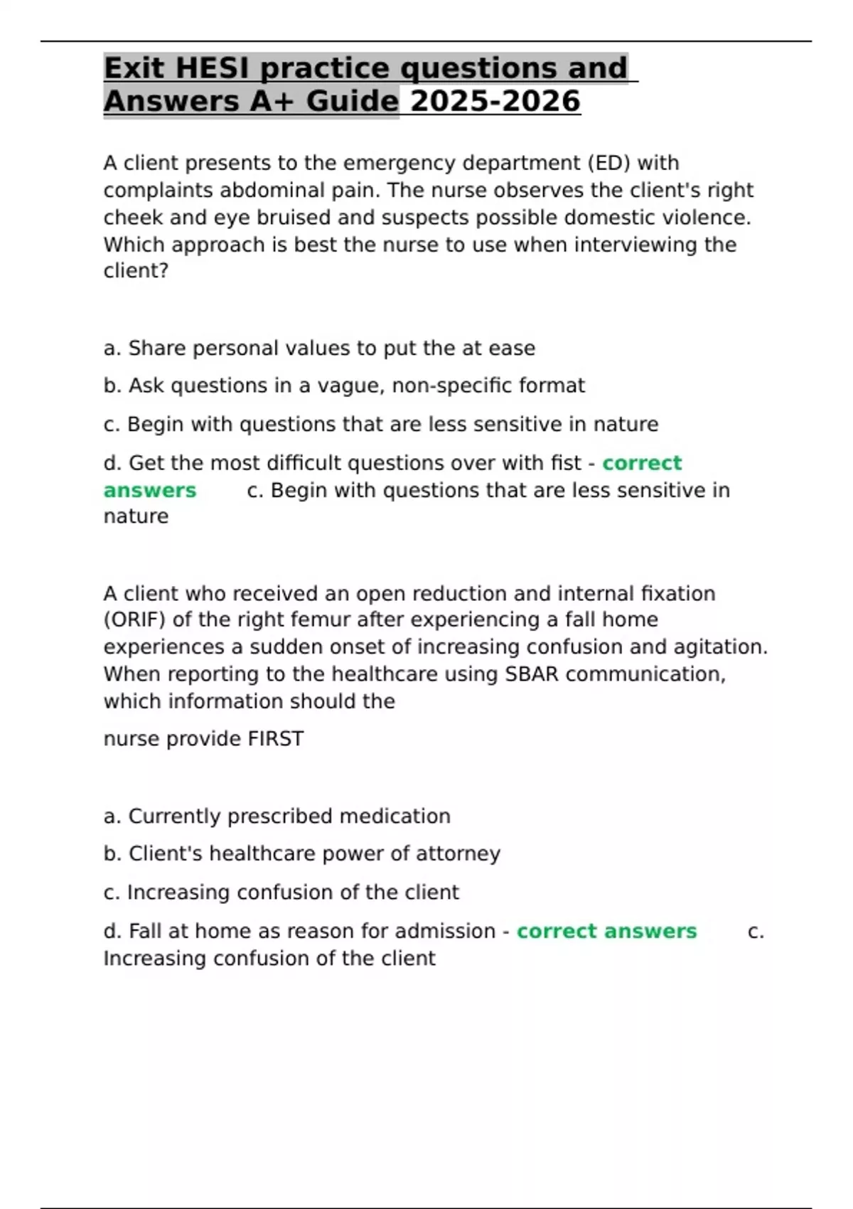 , Exit HESI practice questions and