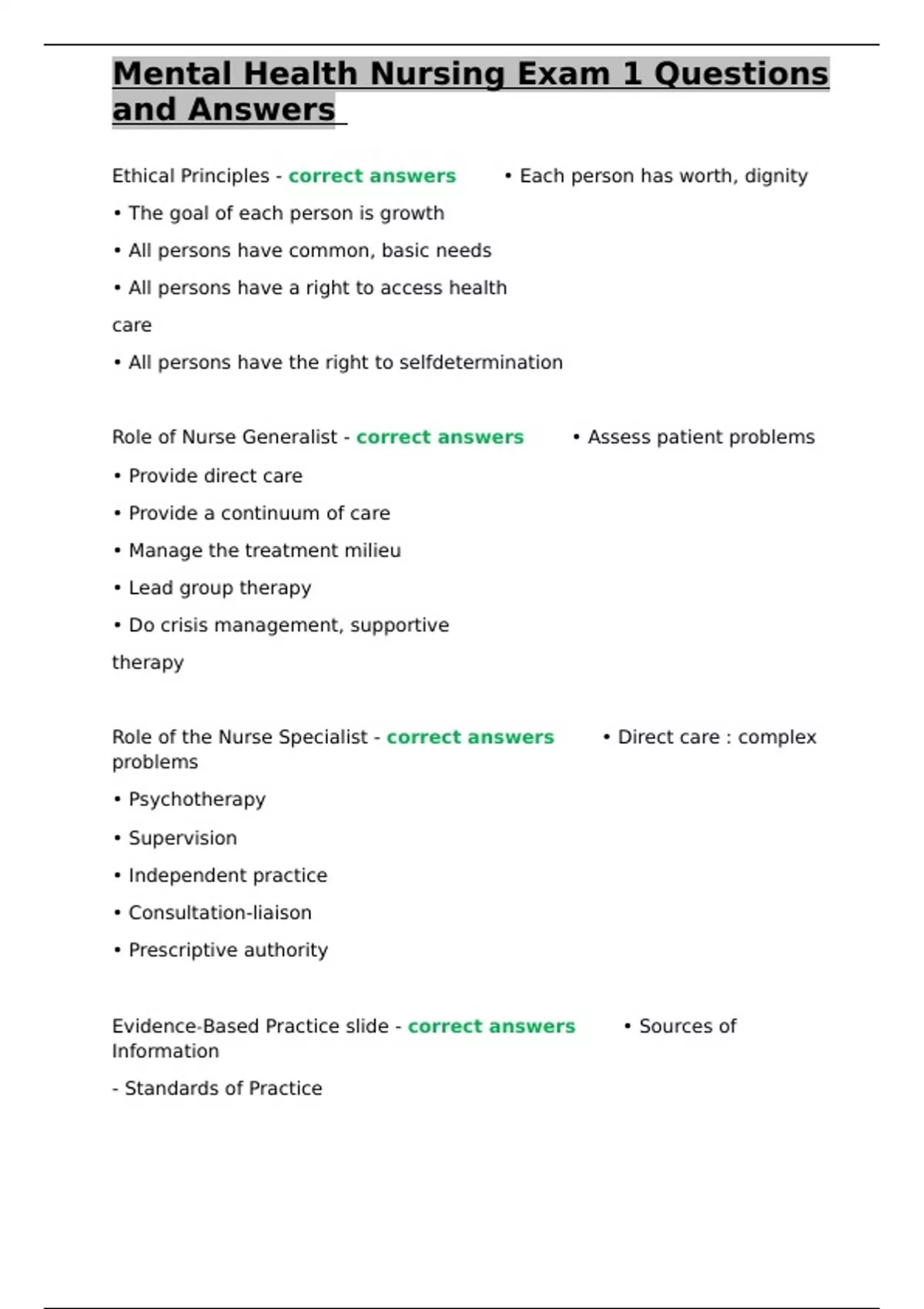 , Mental Health Nursing Exam 1 Questions