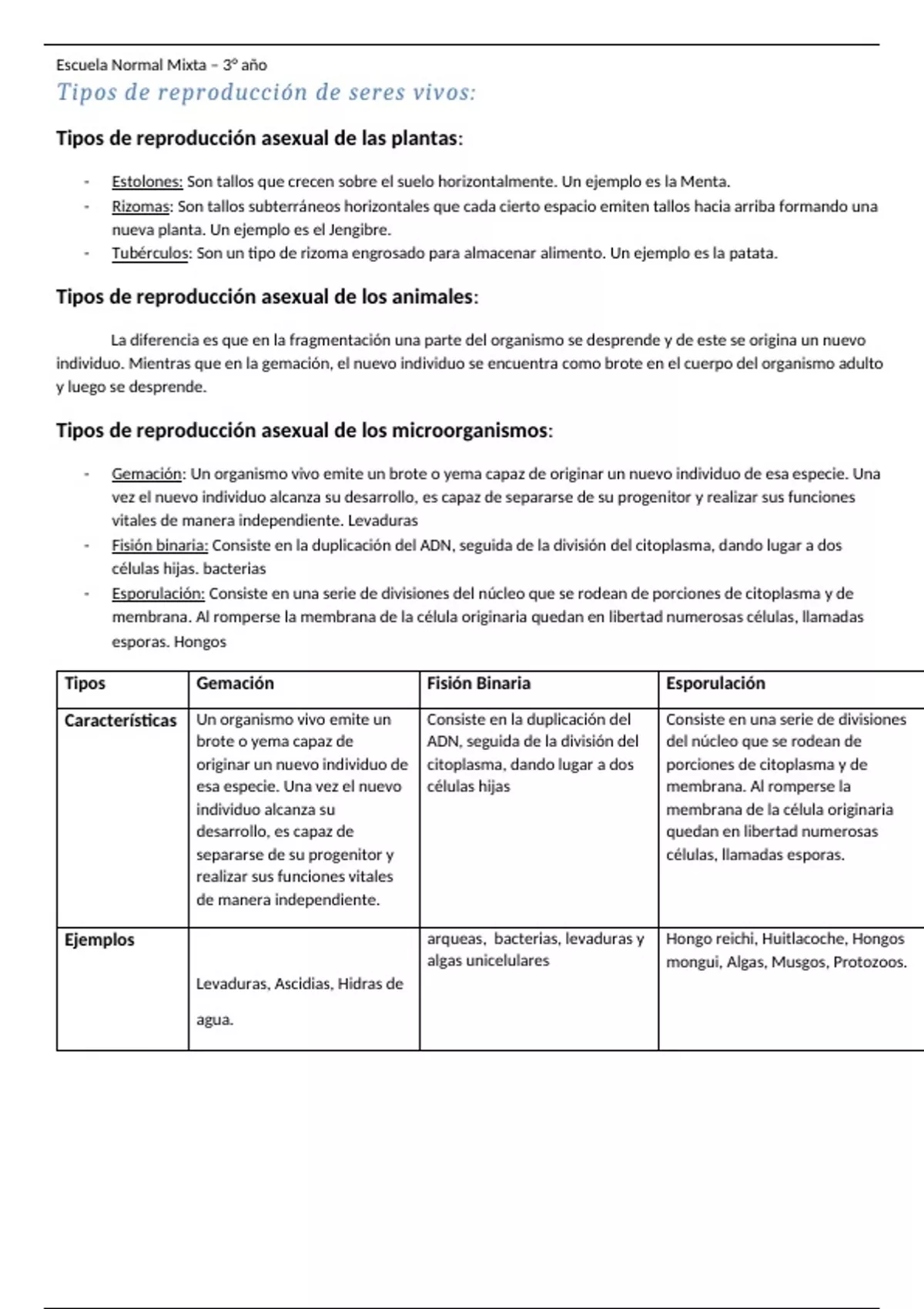 Tipos de reproducción asexual de los microorganismos:
